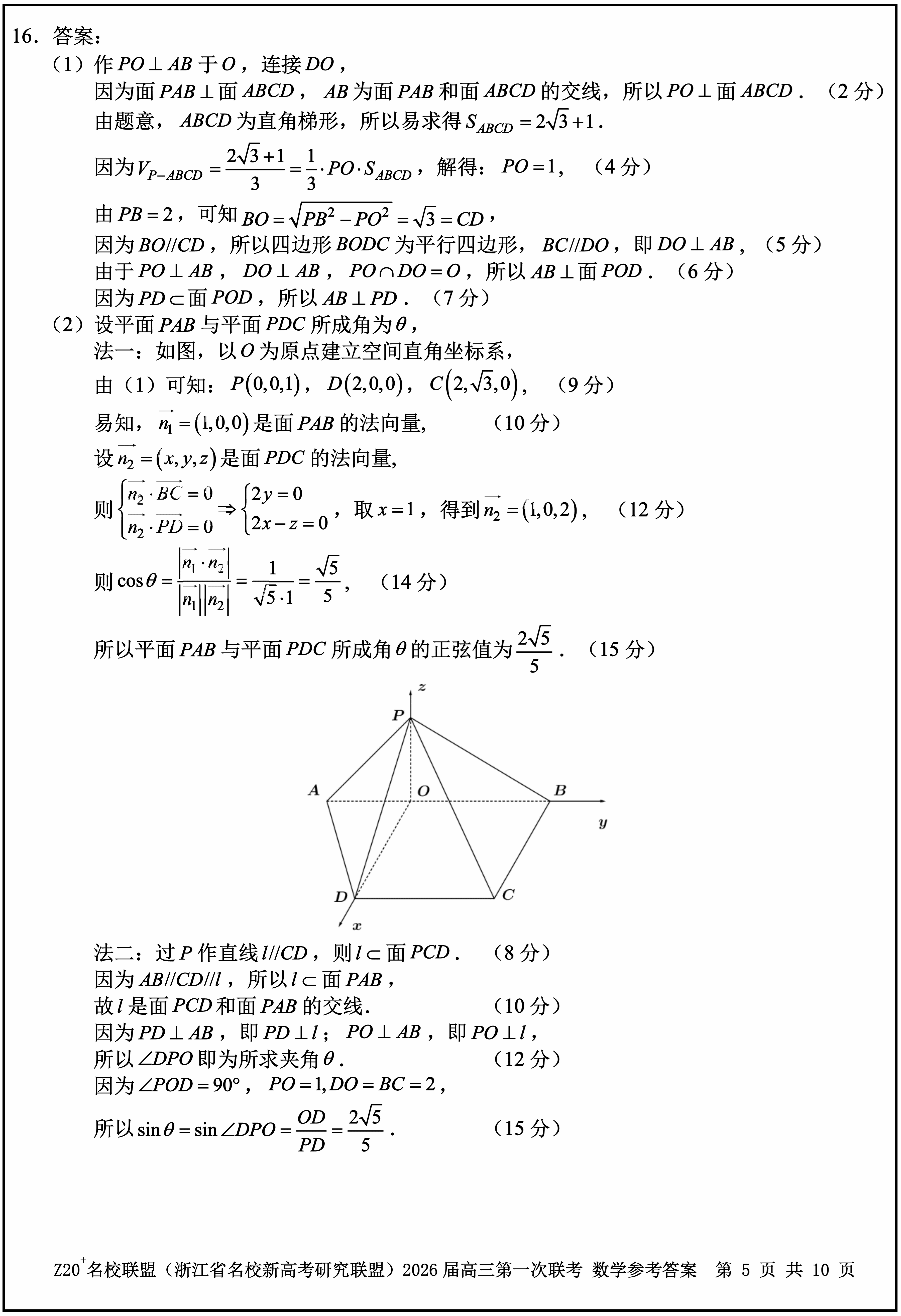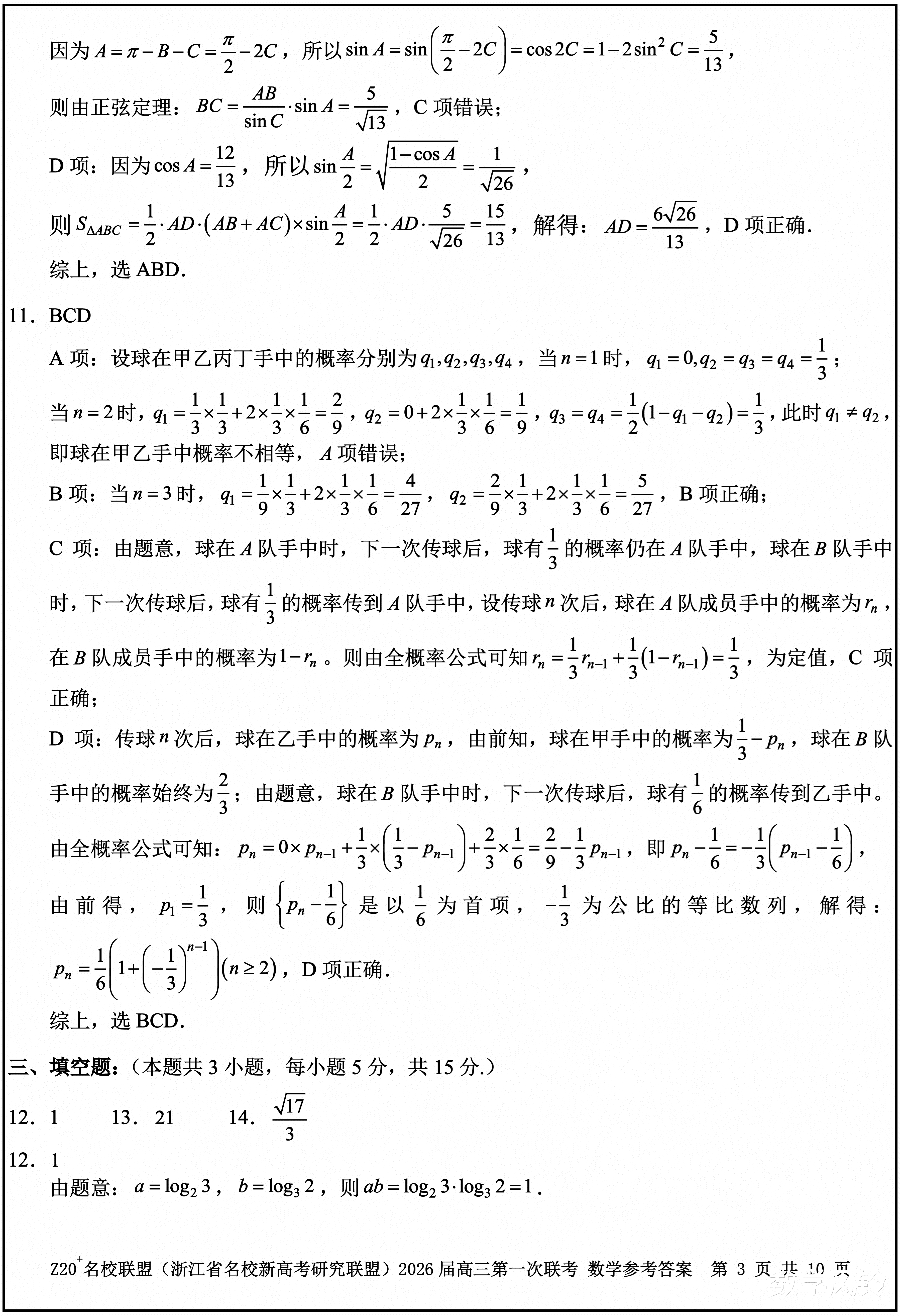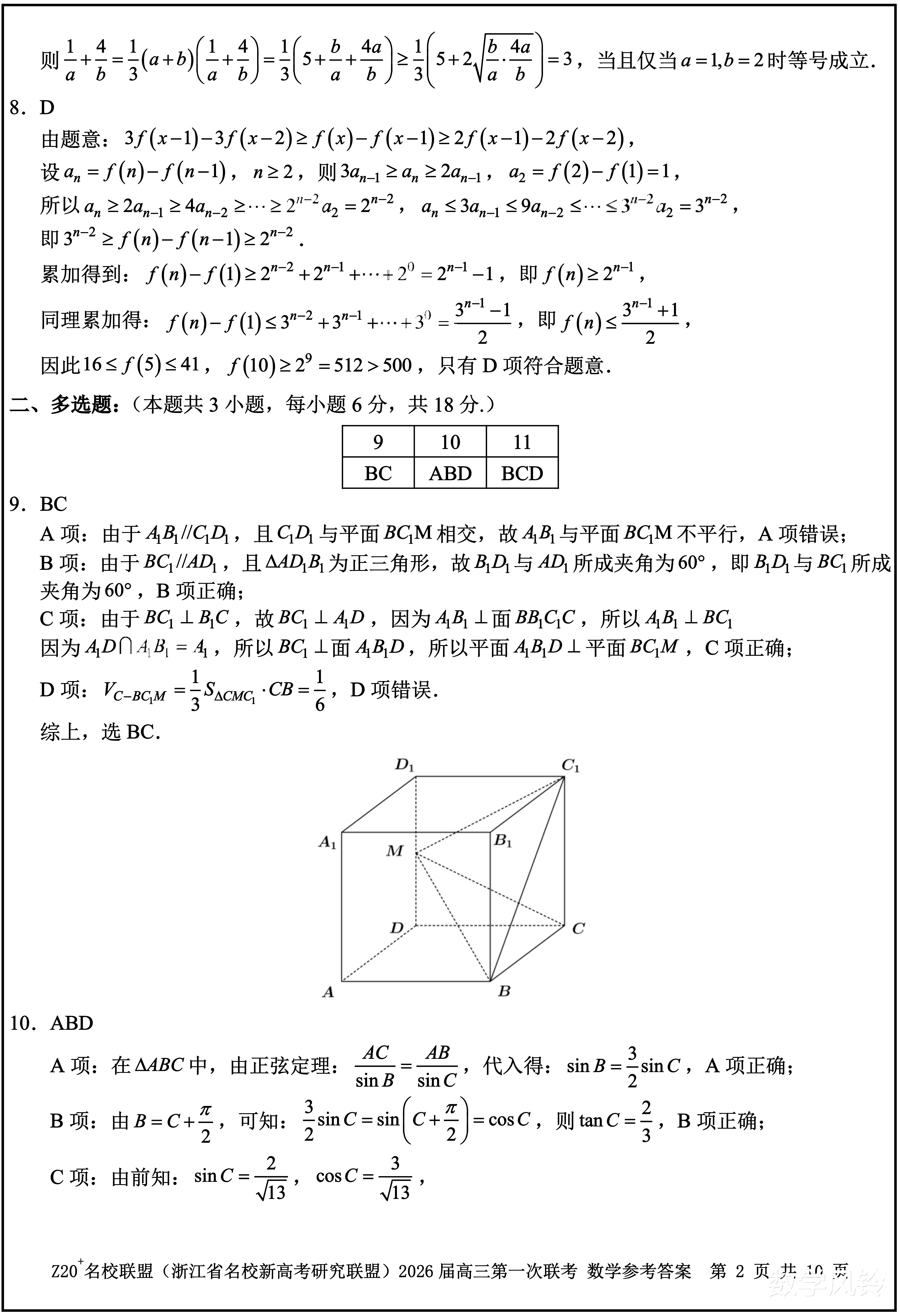下面具体展示2026届Z20第一次联考的数学试卷和每道题目的详细解析: