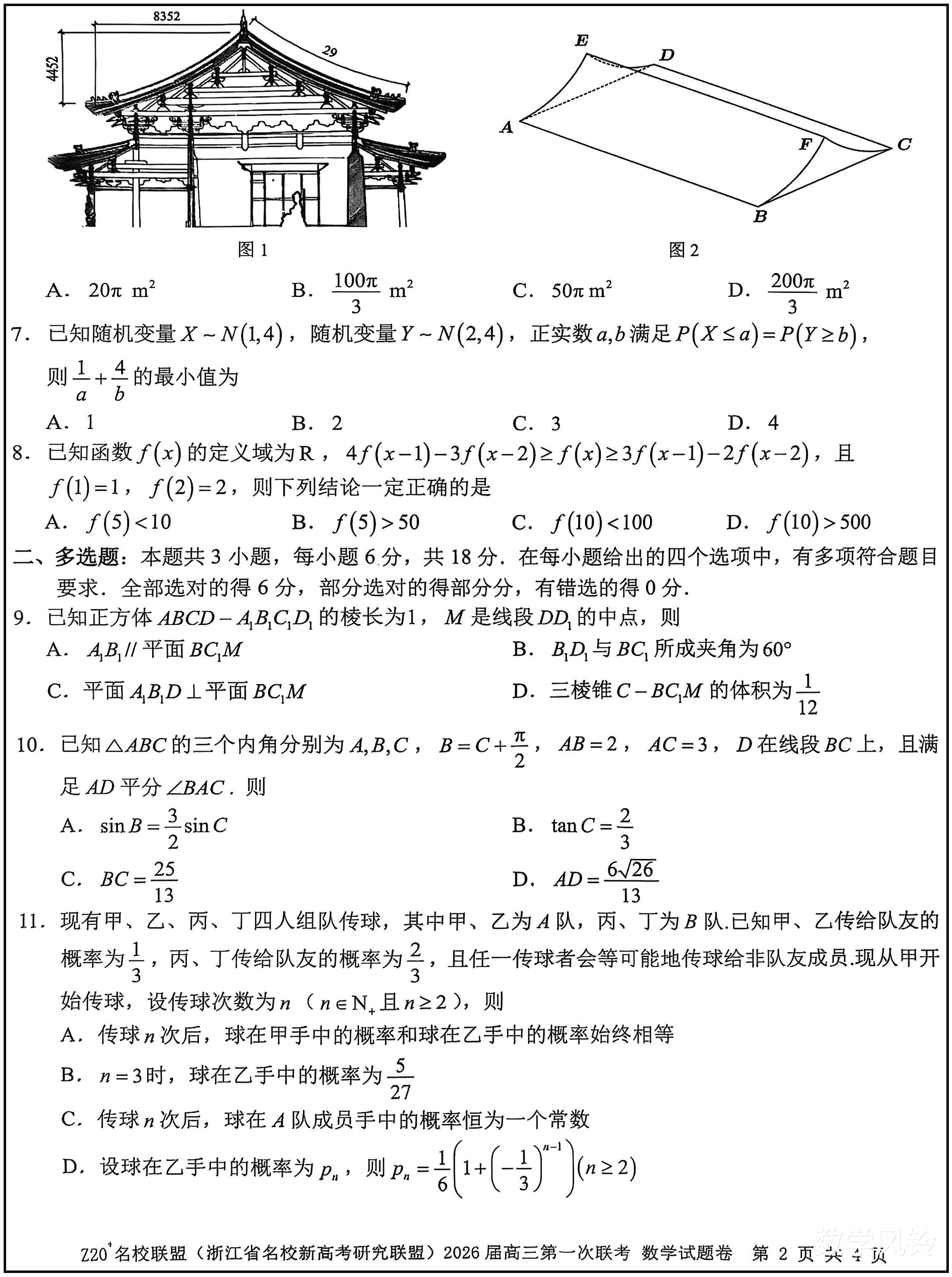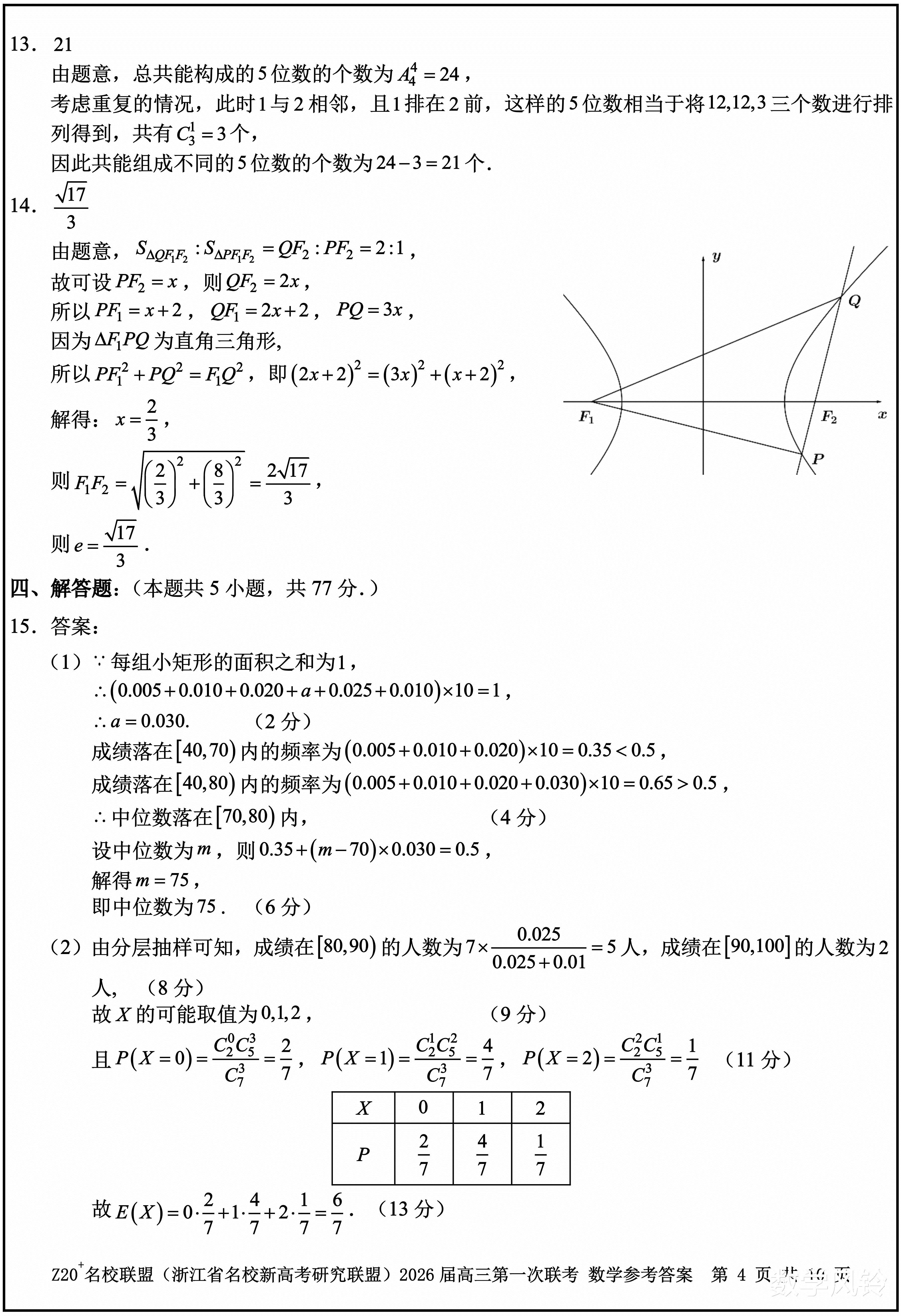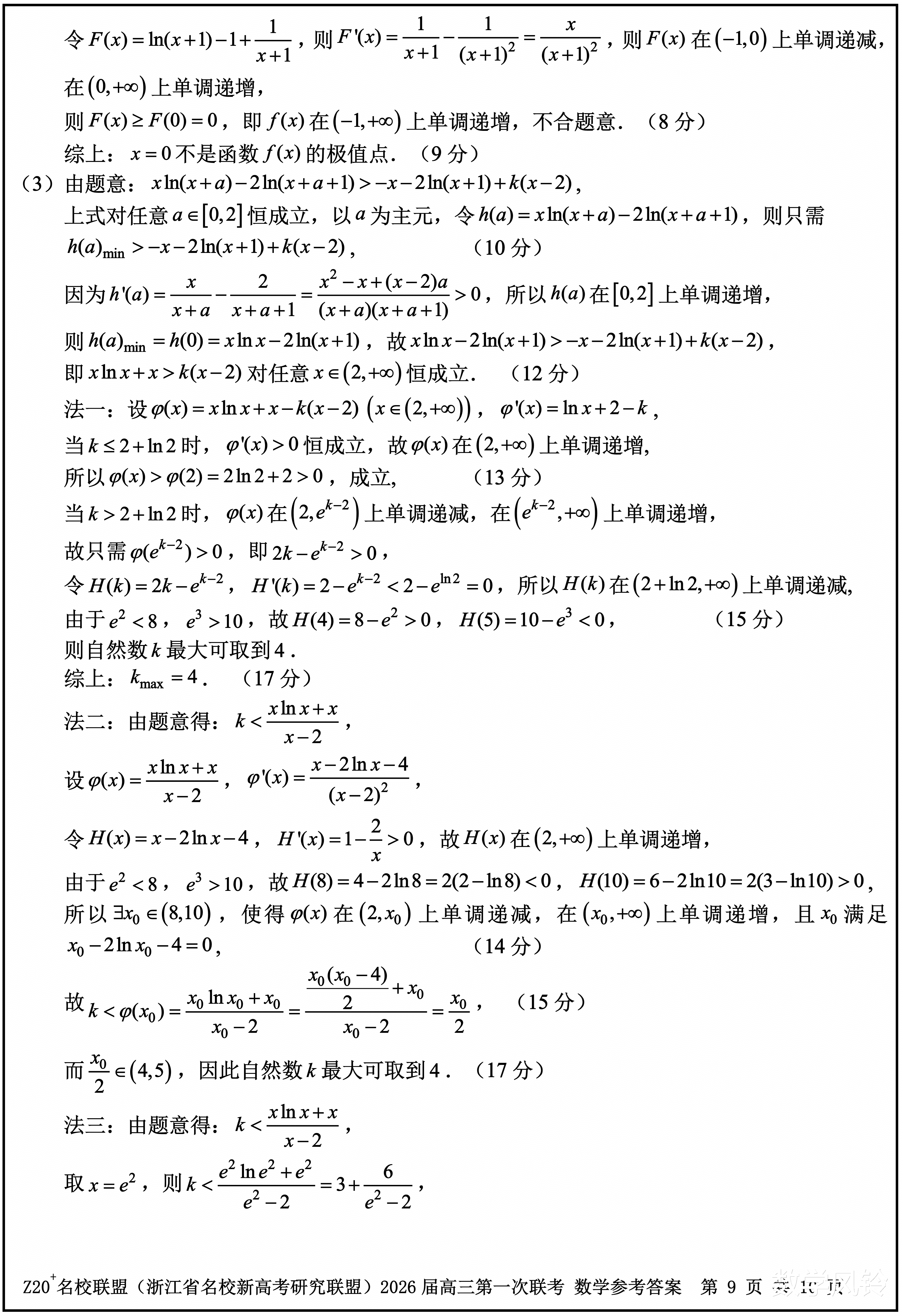 下面具体展示2026届Z20第一次联考的数学试卷和每道题目的详细解析: