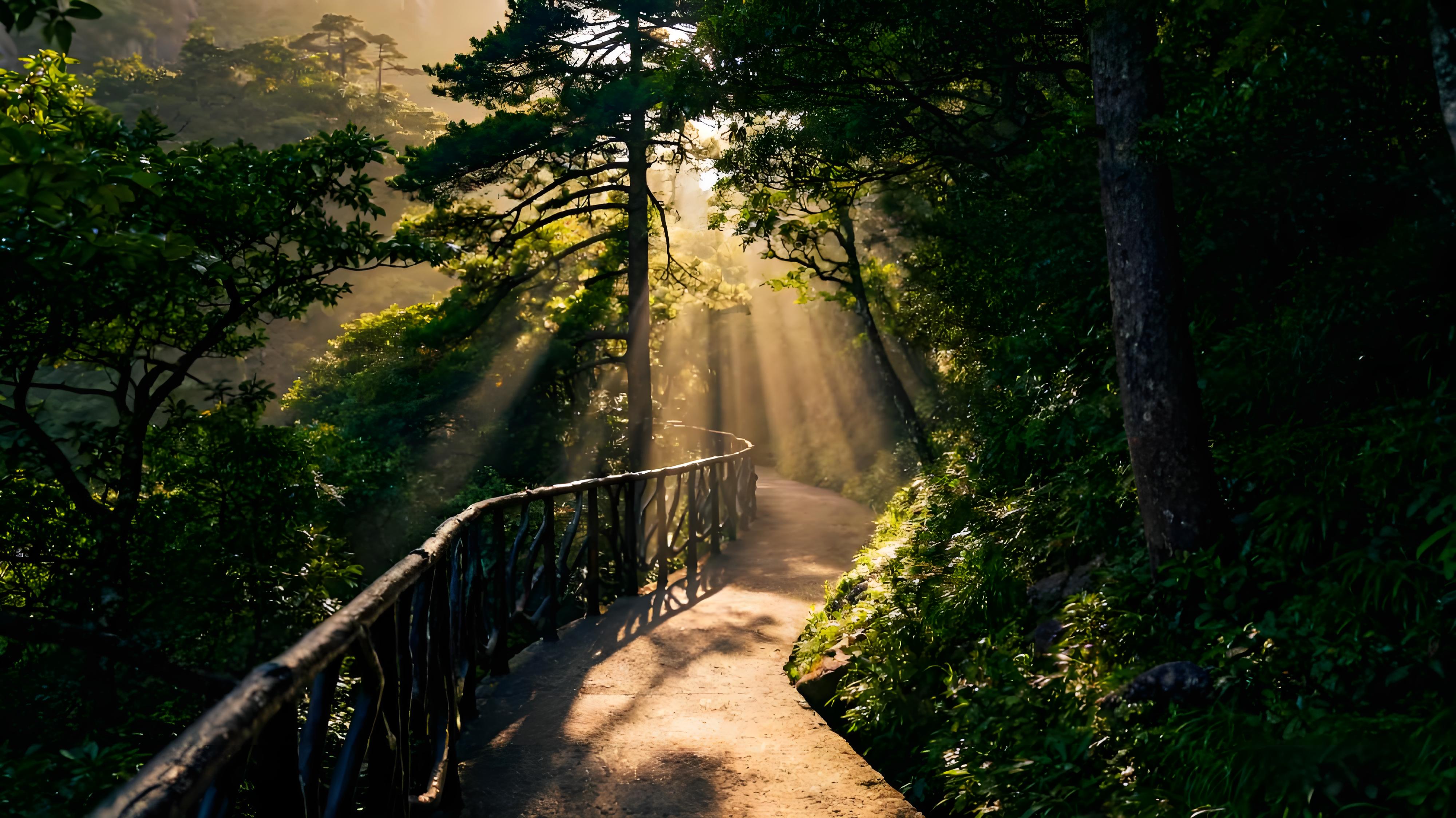 不同时间去,看到的景色也不一样。早上在玉台看日出,阳光洒在 “东方女神” 身上,金灿灿的超美;傍晚去西霞港看晚霞,夕阳把山峰染成橘红色。就算错过了日出日落,午后阳光透过松树,照在栈道上,光影交错,也特别有意境。