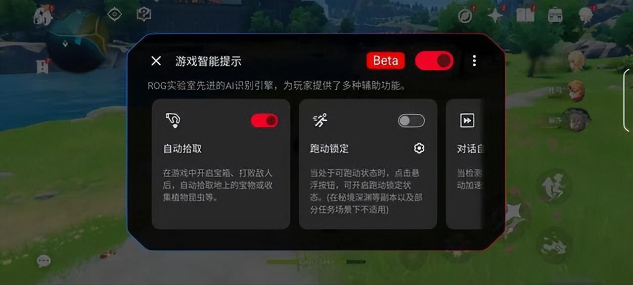 如果说只是性能出众,那还不足以让我推荐这款手机,为了能够给用户带来极致的游戏体验,ROG游戏手机8这次还引入了AI技术,比如在《原神》、《崩坏:星穹铁道》等游戏中,可以设置自动拾取宝物、加速对话剧情亦或者是快速自动连点等,加上AirTrigger肩键,X-触觉震撼系统等细节配置,游戏体验度直接拉满!