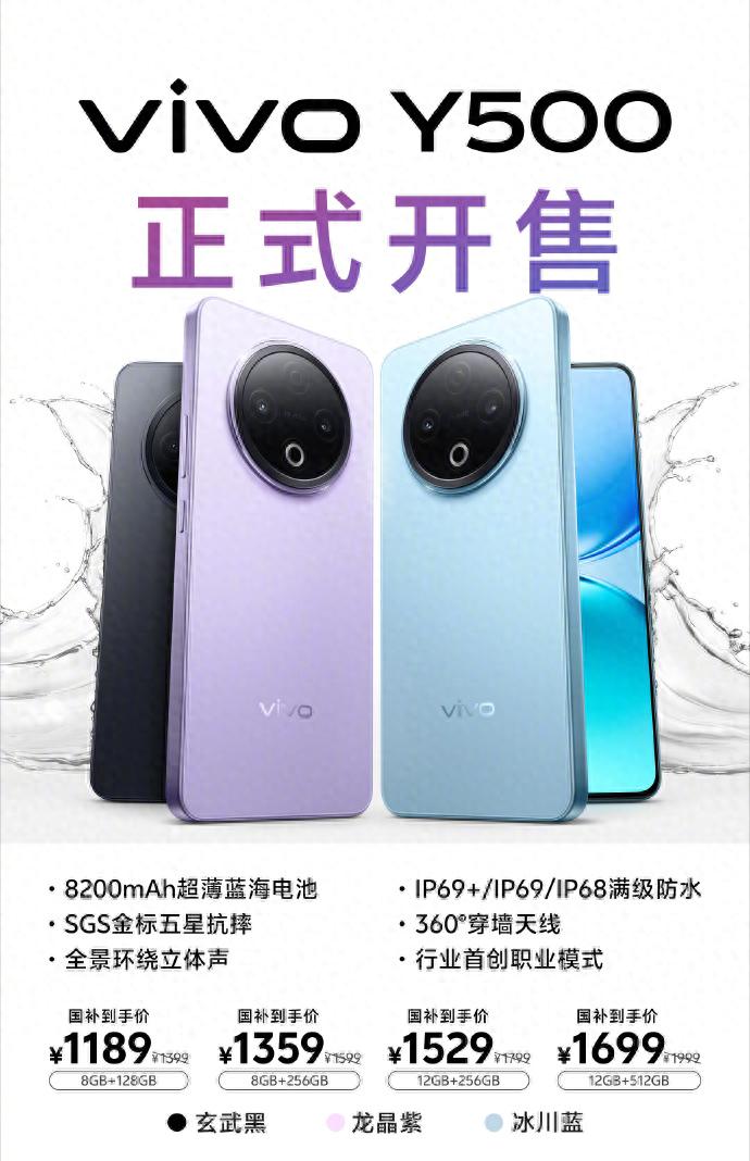 你有没有经历过,手机掉水里心凉半截?信号一进电梯就“失踪”?或者出门半天电量就红了……这些糟心事,今天起或许有救了——vivo Y500于9月5日正式开售,主打一个扛造又耐用。值得一提的是,现在打开京东APP,搜索「vivo Y500」,参与vivo京东自营旗舰店Y500 京东小魔方新品日,先人一步 体验新机,首发限时至高立省100元,至高享6期免息,限量赠全能守护礼盒、4年电池宝&1年进水保,充电宝/耳机等权益随心选。