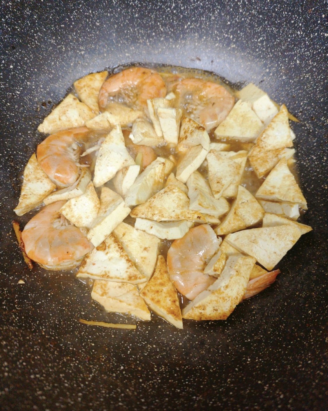 下入虾翻炒,加入耗油