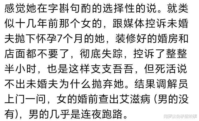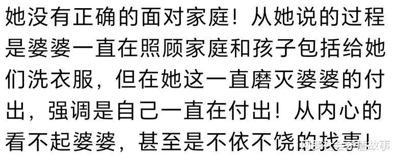 咱说实话,为什么是女方后悔?因为除了他认为的双方在气上过不去之外,咱就仔细看这个事,这个男的顾家,男的的母亲,就是他这个婆婆在力气上,精力上方方面面是付出型的。
