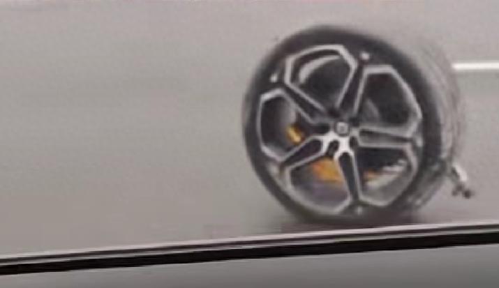 现场视频截图显示, 小米的左前轮车轴断裂,车轮脱落在10米开外。