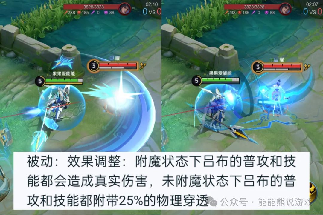 《王者荣耀》体验服12号进行版本更新后,策划针对吕布进行了优化,这次调整后其被动自带穿透效果,无论是普攻还是技能都附加25%穿透,同时附魔状态技能与普攻都会造成真实伤害。除此之外,这次体验服调整后,吕布被动与技能的回血能力全部大幅提升。同时其技能伤害也整体略微增强,虽然策划削弱了吕布二技能的减速效果,但是却提升了该技能赋予的护盾值。基础伤害与坦度的提升,再搭配上被动穿透效果,使得吕布在新版本彻底成为坦克克星。