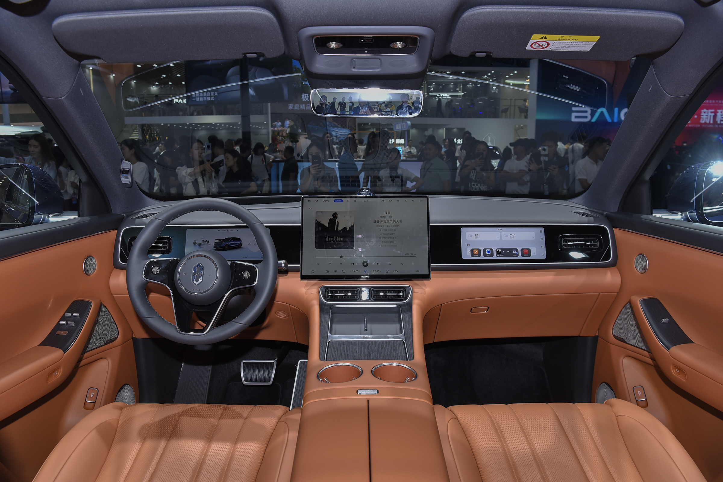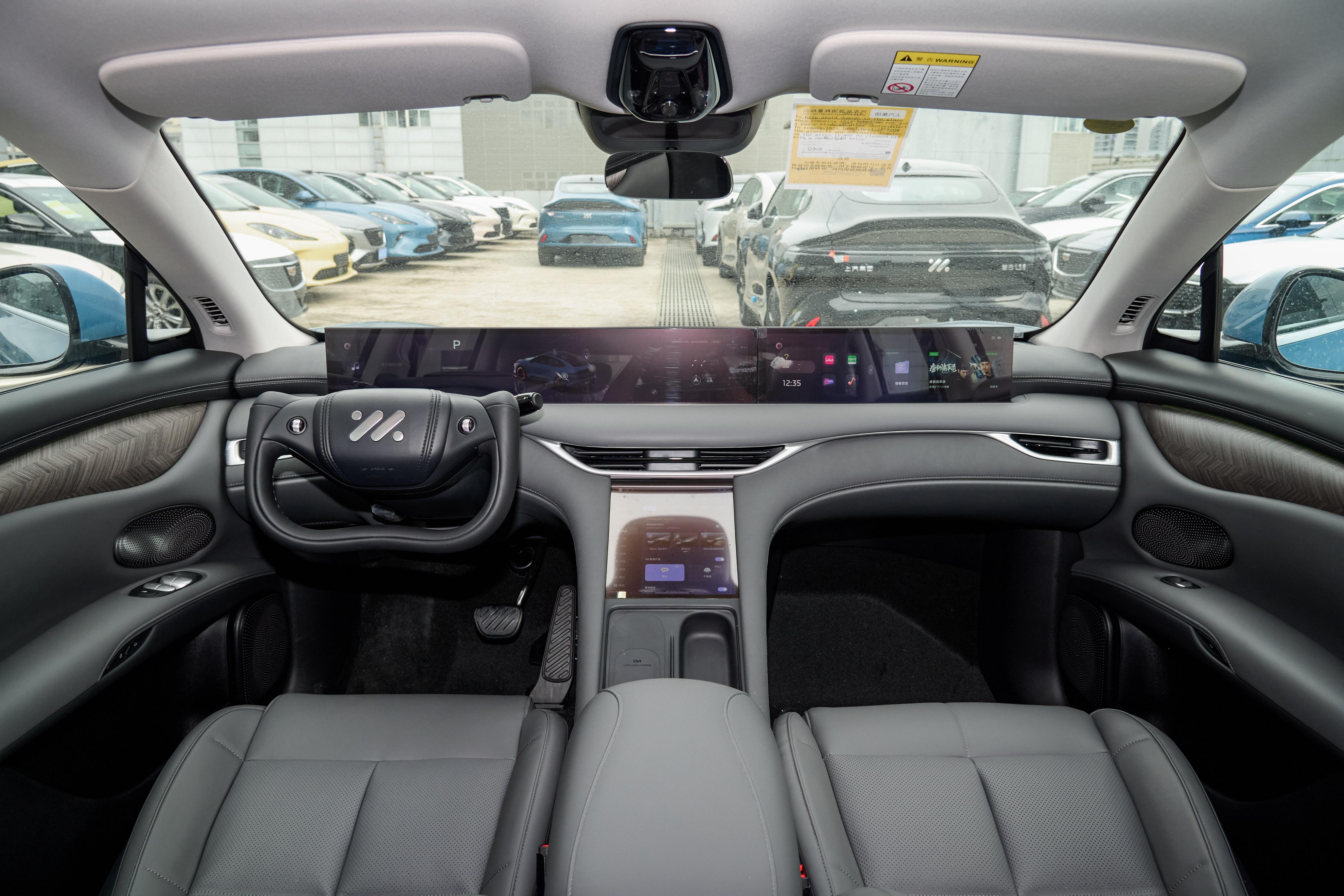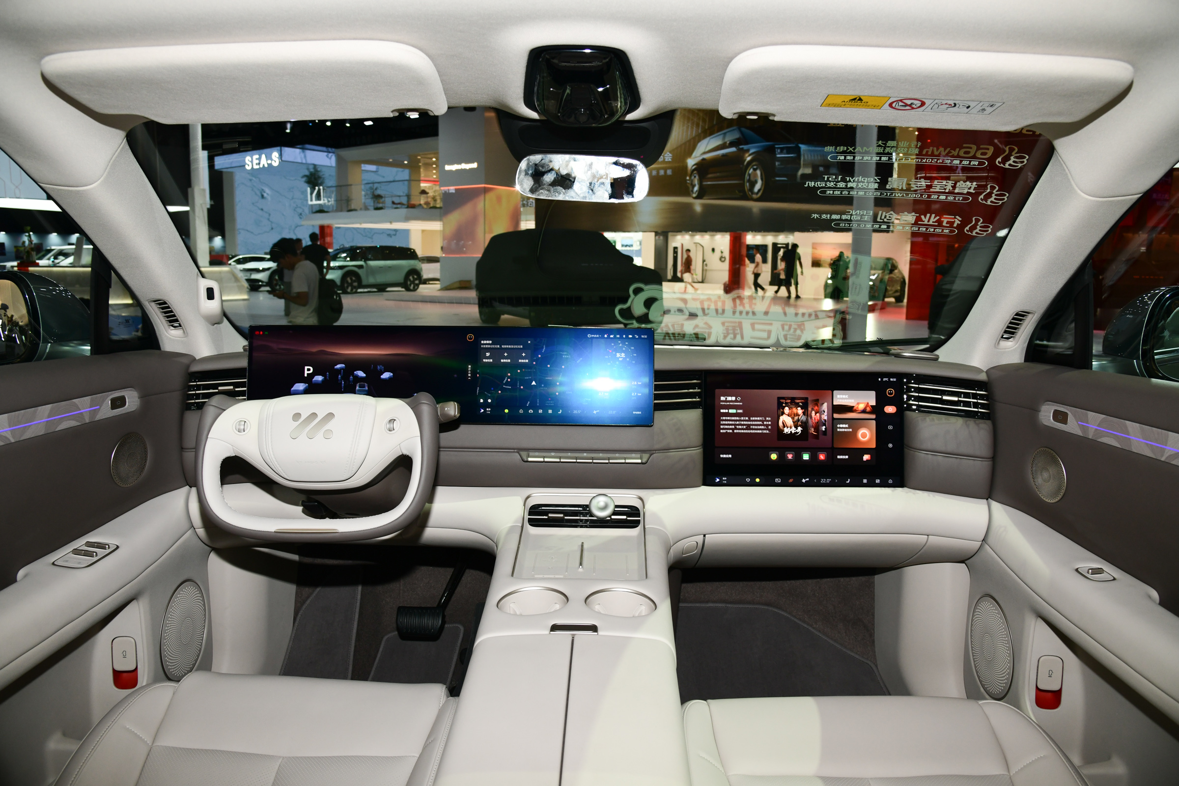 昊铂A800内饰在本届车展没有对外展示。根据广汽昊铂公布的设计信息,该车提供悬浮式中控屏和三辐式方向盘,并在副仪表台位置设计有手机无线充电板,可选华为乾崑辅助驾驶ADS 4。