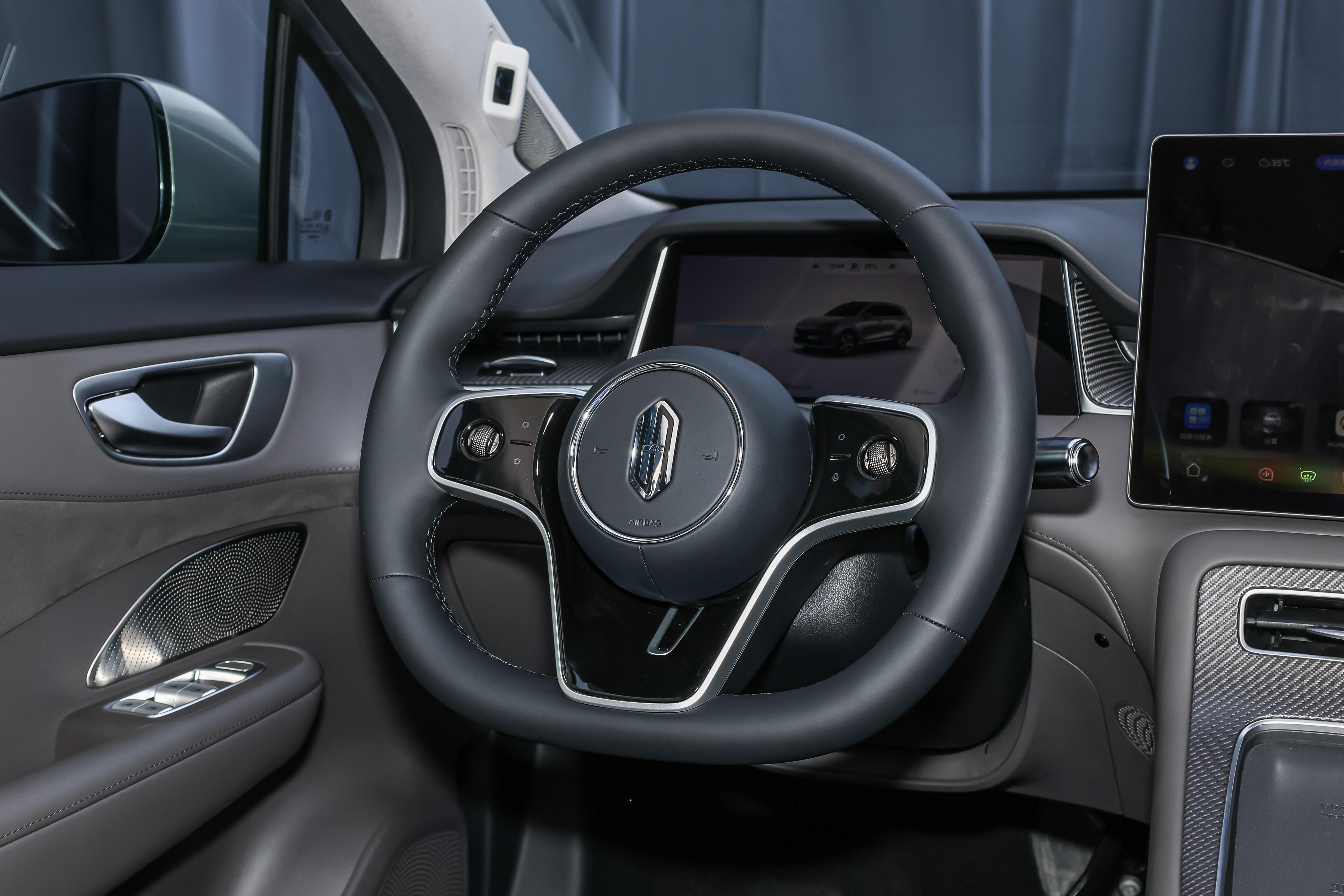 内饰方面,新款智己LS6中控台使用更具层次感的设计手法,其液晶仪表盘和中控屏为连体式设计,副驾娱乐屏为独立式设计,取消现款车型的一体式大连屏风格,以及位于副仪表台区域的中枢屏,可选传统三辐式全幅方向盘和YAT半幅方向盘。