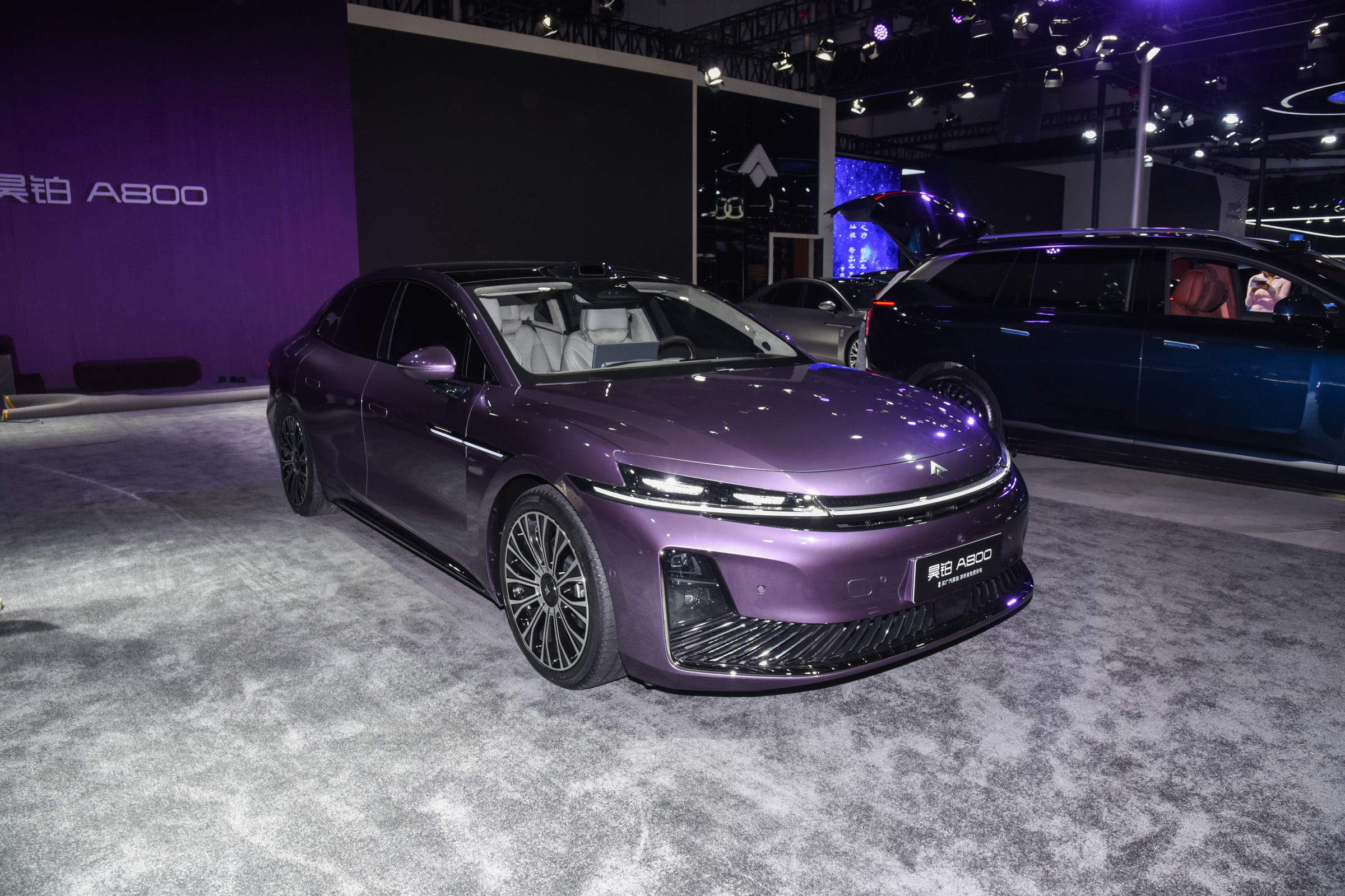 广汽昊铂A800:中大型车、纯电续航里程178公里(测试工况未知)昊铂A800,紫色涂装