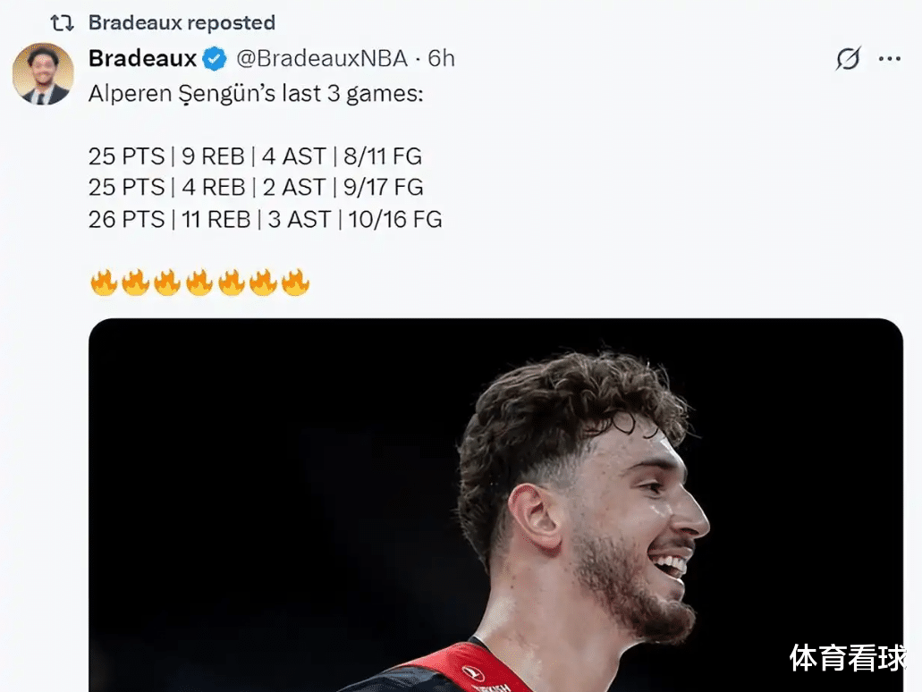 我火内线核心申京再次发挥出色,他全场16投10中,罚球9中6,狂砍26分11篮板3助攻4抢断1盖帽的全面数据,正负值高达+25,完全统治了比赛。