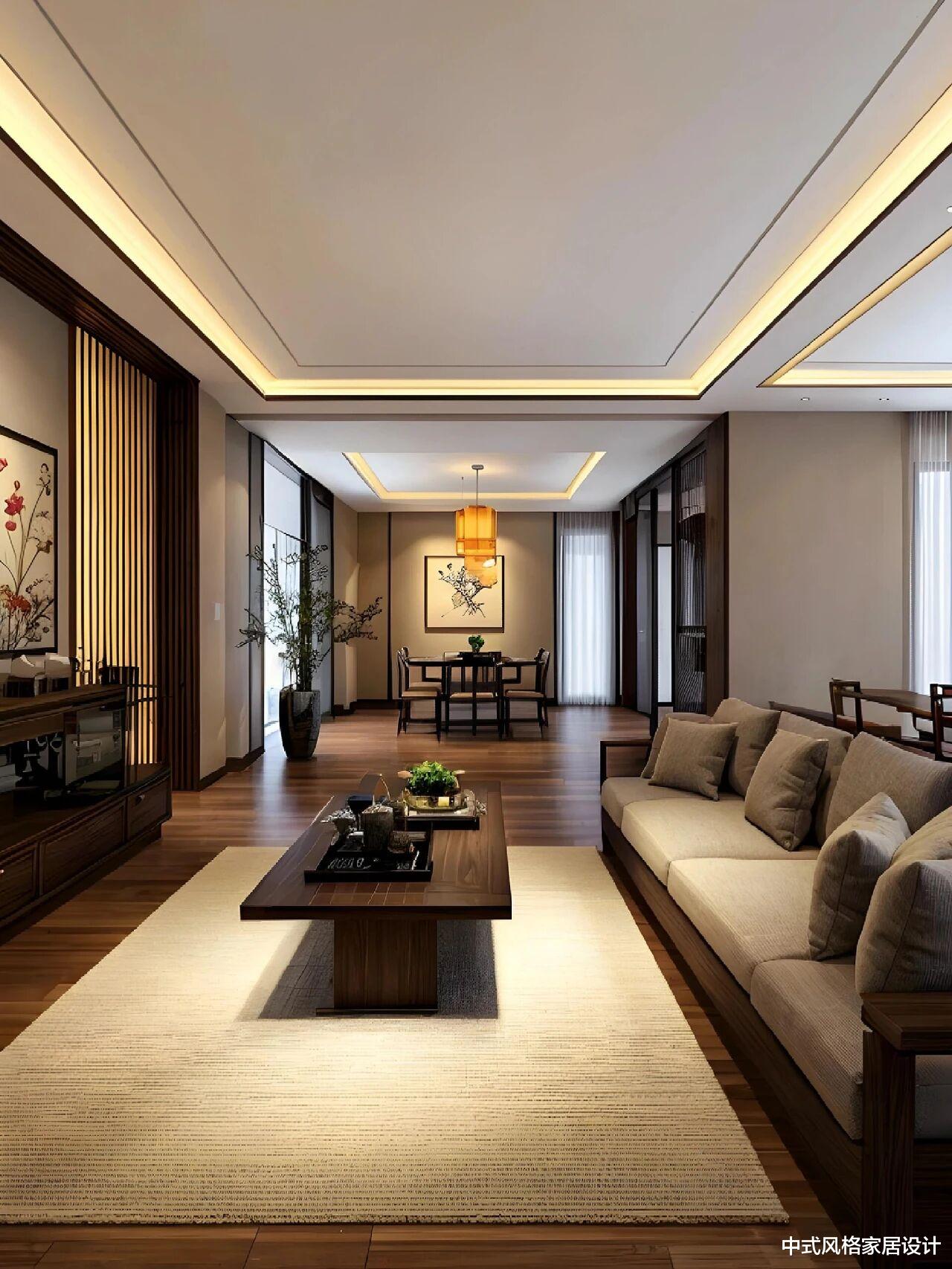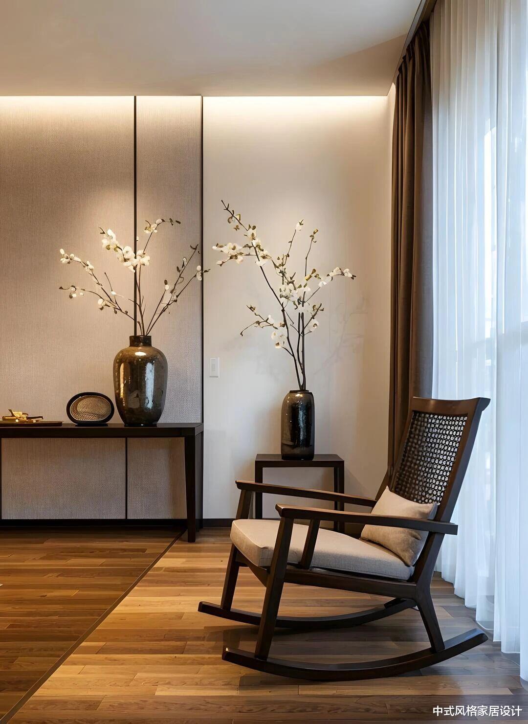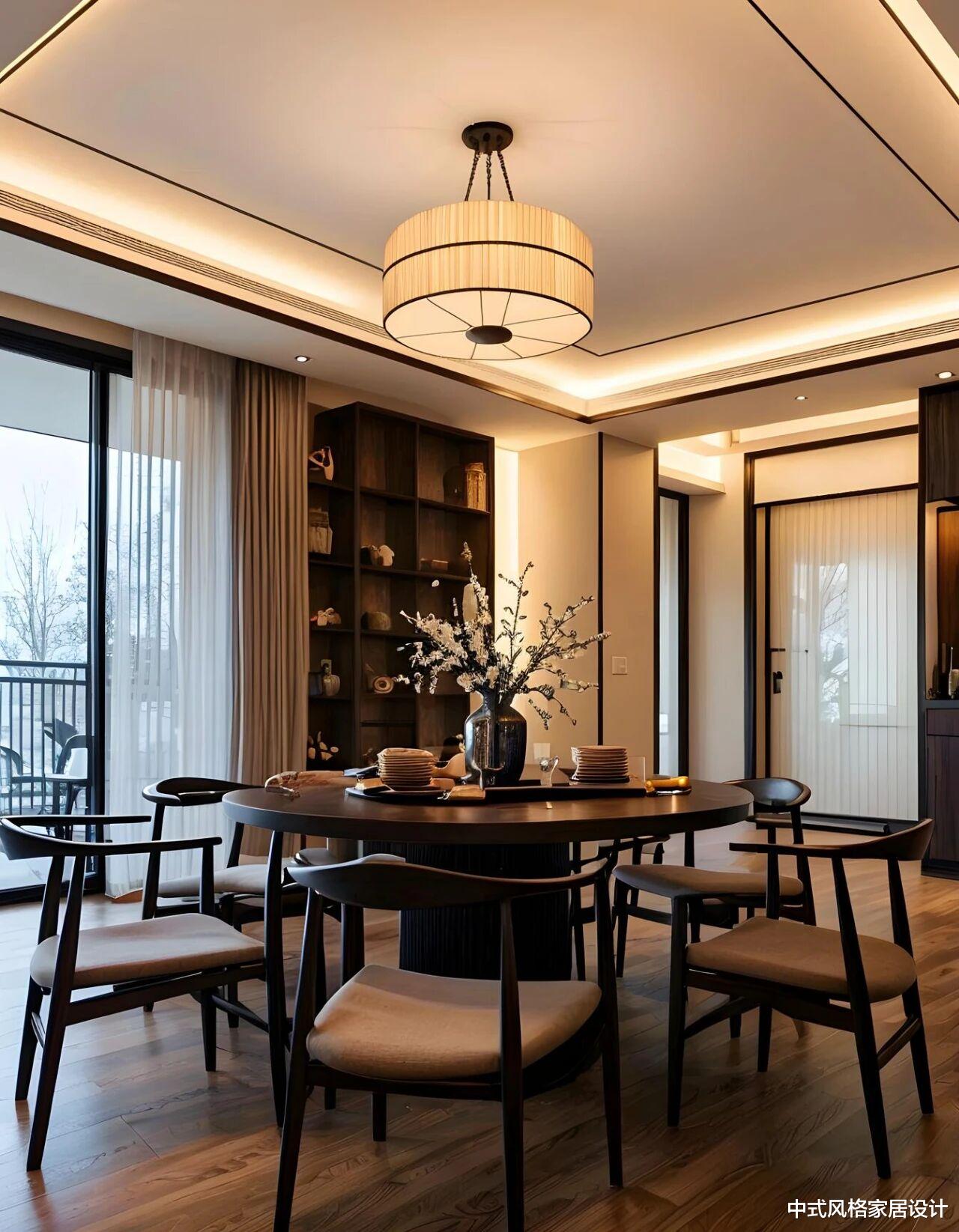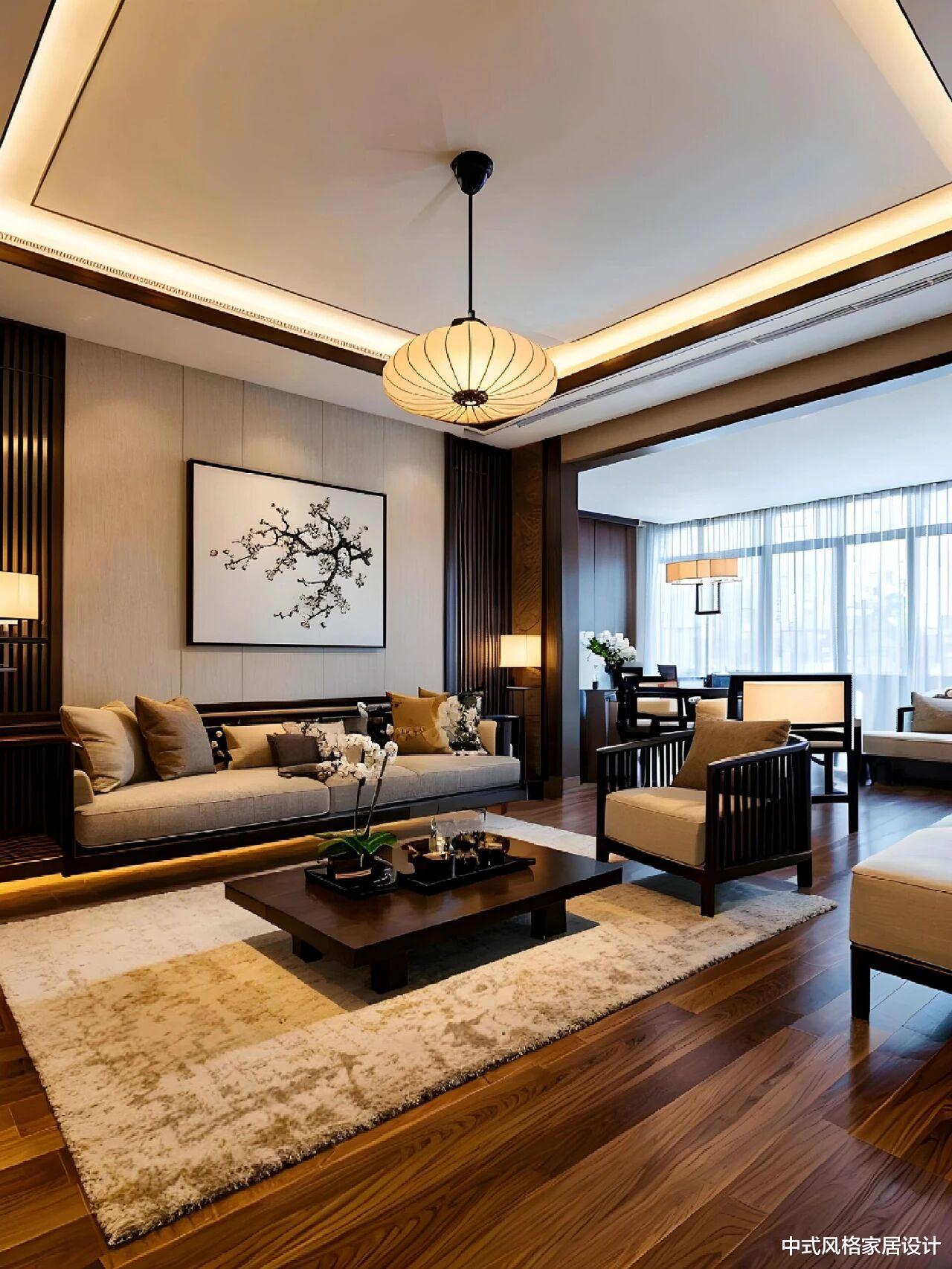 客厅中央,一套精工细作的胡桃木家具成为空间的主角。没有繁复的雕花,没有夸张的造型,只有木材本身纹理的自然流露和恰到好处的比例尺度。这种对材料本质的尊重,正是宋人“大道至简”哲学的当代诠释。坐在这样的空间里,你会不由自主地放慢脚步,降低音量,与周遭环境达成一种和谐的默契。抬头望去,中式吊灯以现代手法重新诠释了传统元素,光线透过素绢材质,柔和地洒满整个空间。这些细节处的精心设计,无不体现着“藏而不露”的东方智慧。