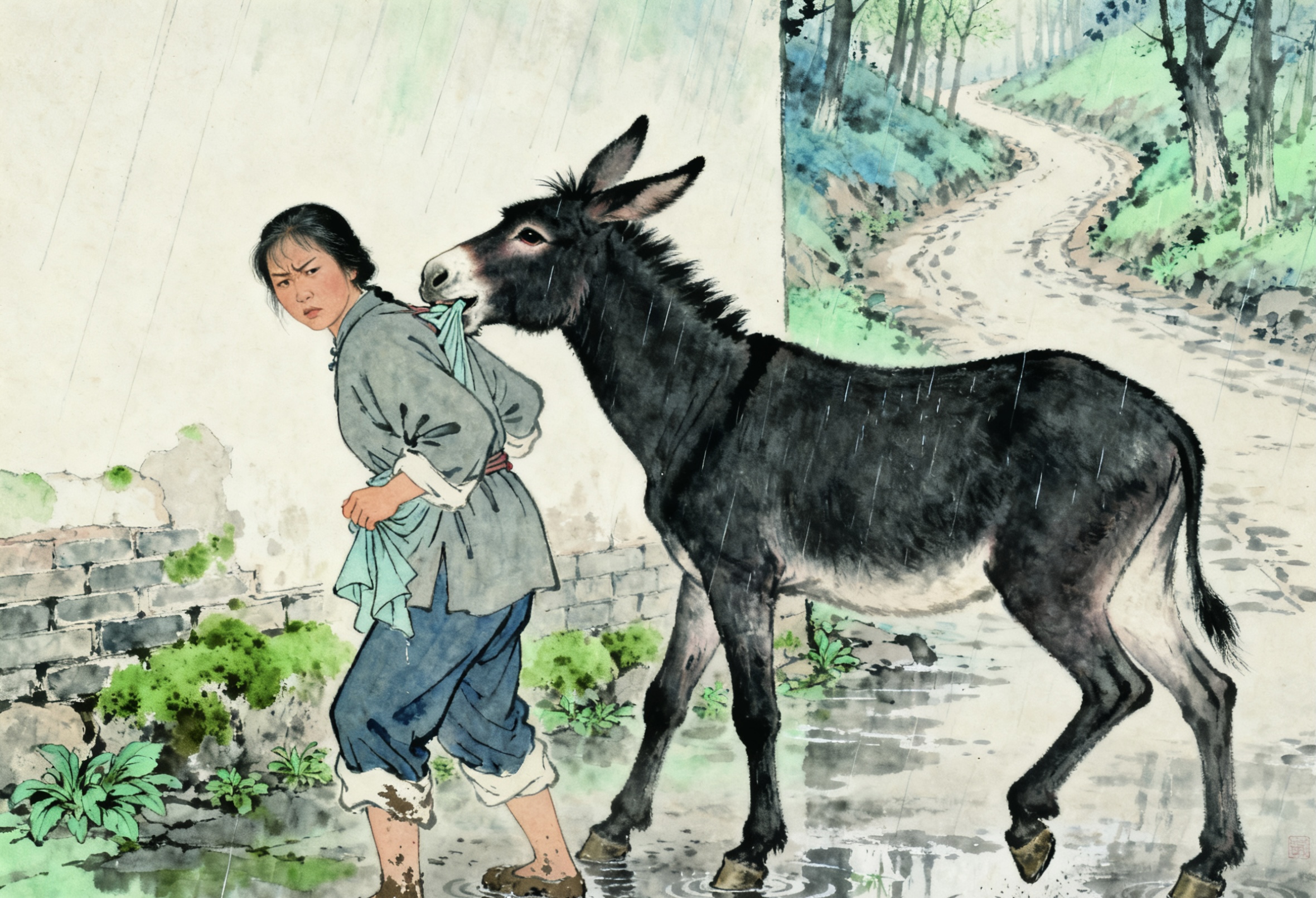 村里有人说她 “疯了”,有人说她 “想男人想糊涂了,把驴当念想”,桂兰都不在意。她每天晚上给驴刷毛时,都会念叨两句:“驴啊驴,你快点好起来,等开春了,咱们一起去田里耕地,我男人要是在,准能喜欢你。”