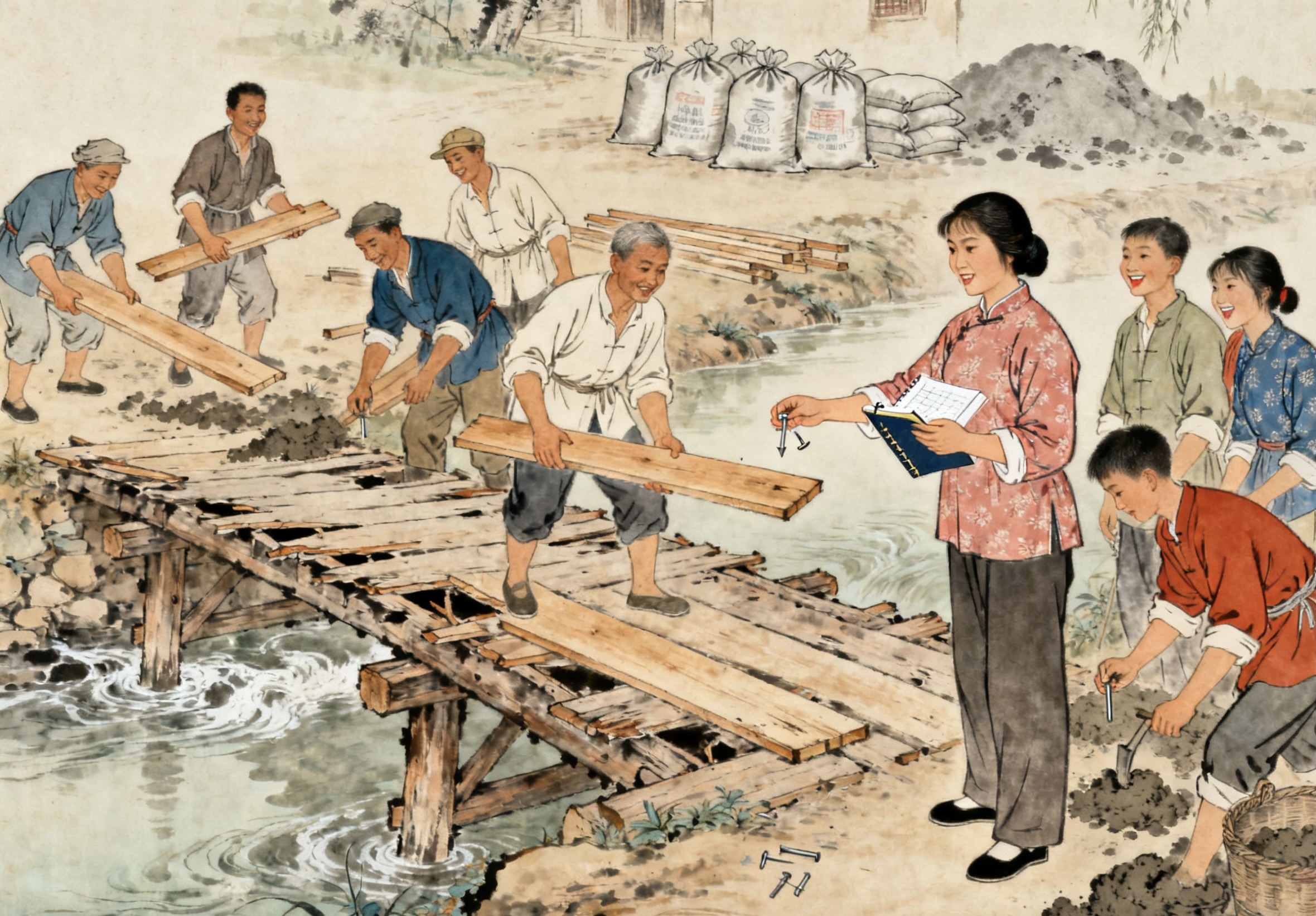 桂兰没把钱自己藏起来。她用一部分银元修了村里的桥 —— 以前那桥是木桥,一到下雨天就漏水,好多人都摔过;她还给村学买了书本和桌椅,让村里的孩子能好好读书;她还帮村里的贫困户买了种子和农具,让他们能好好种地。