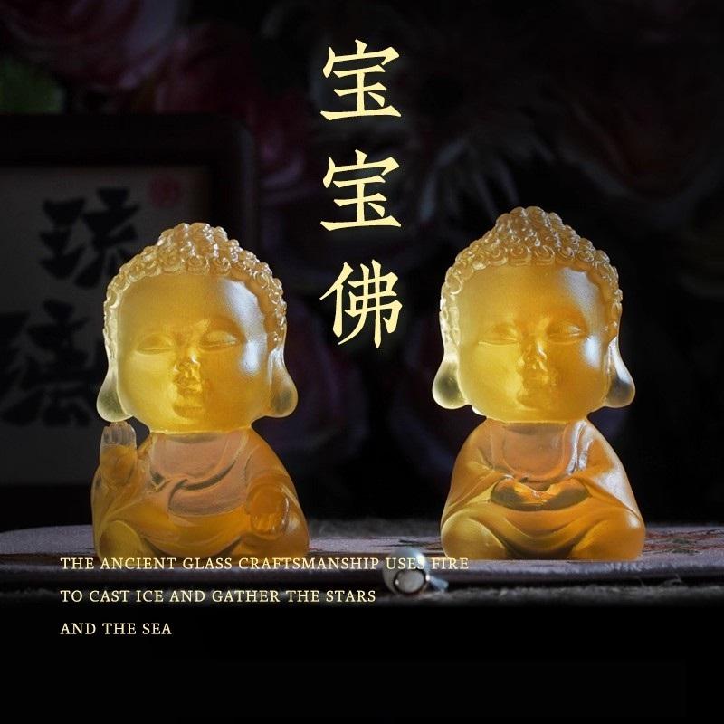当我们将目光聚焦在这两款古法琉璃宝宝佛上时,仿佛能穿越时空的界限,与古老的佛教文化进行一场亲密的对话 。琉璃材质的独特质感,为宝宝佛增添了一份神秘与高贵,每一道流转的光芒,都像是在诉说着千年的故事 。