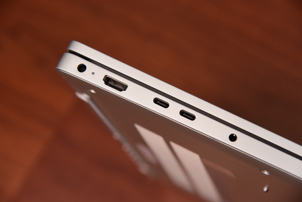 笔记本左侧主要有电源接口3.5mm音频接口、HDMI视频接口、2个TYPE-C,其中一个满血接口支持雷电4,同时兼容USB4传输标准。