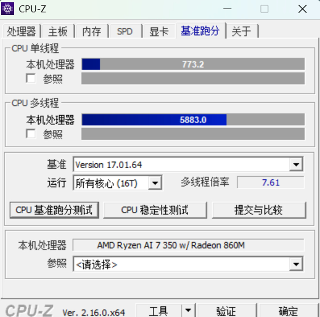 戴尔Pro14的硬件平台为Ryzen AI 7 350和RADEON 860M的硬件组合。Ryzen AI 7 350采用了AMD Zen5架构,8核16线程,8MB二级级存,16MB三级级存,8个核心为4个性能核心,4个能效核心,基本频率3.8G,加速频率5.0GHz。
