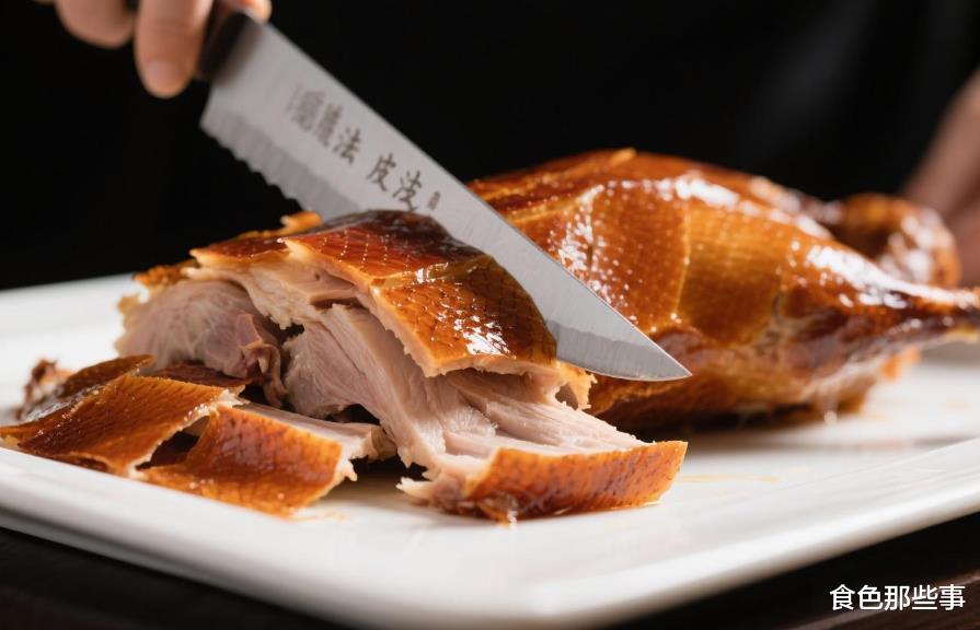 北京烤鸭片鸭师需持证上岗,片鸭时如表演武术,刀光闪动间鸭肉已成艺术品。