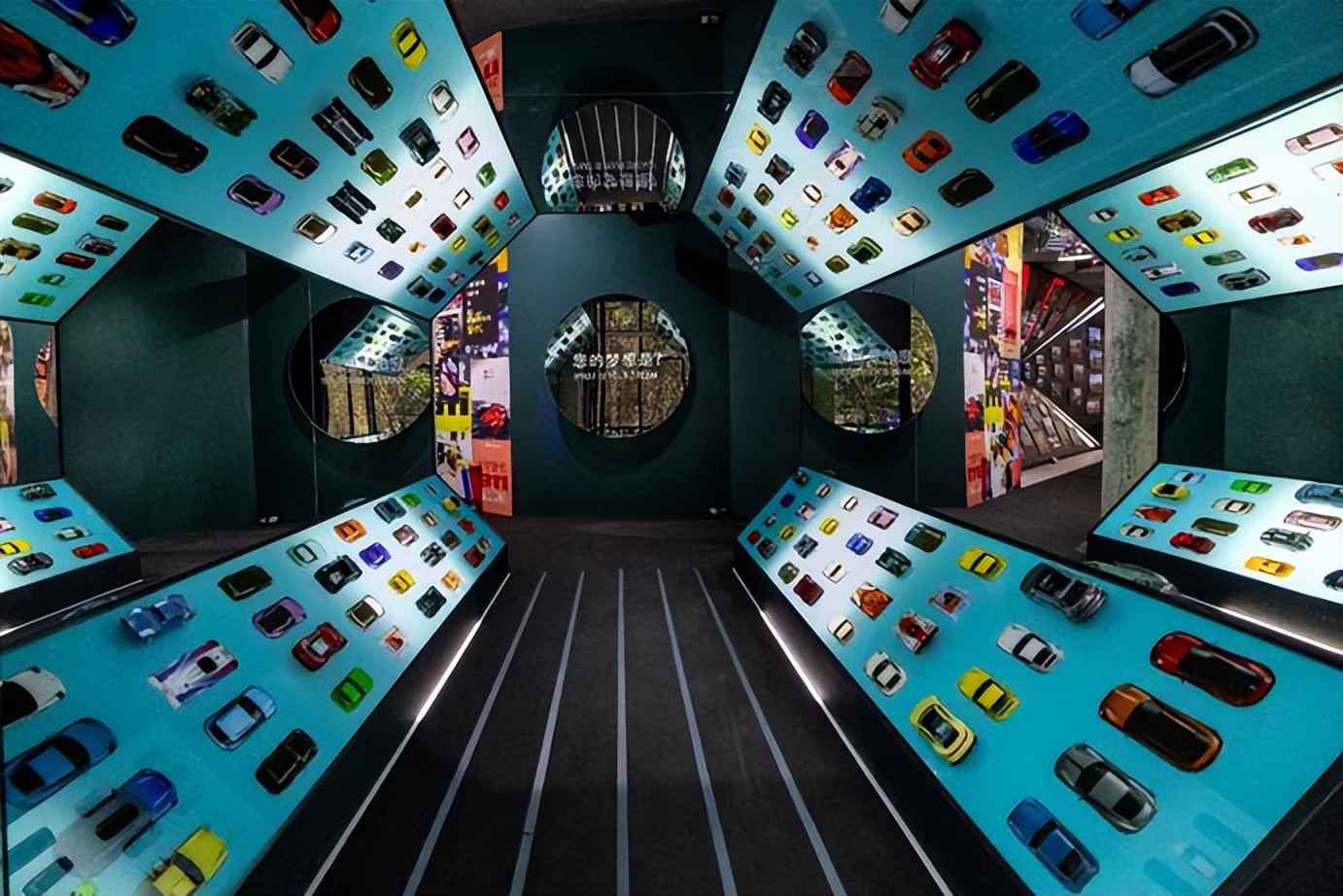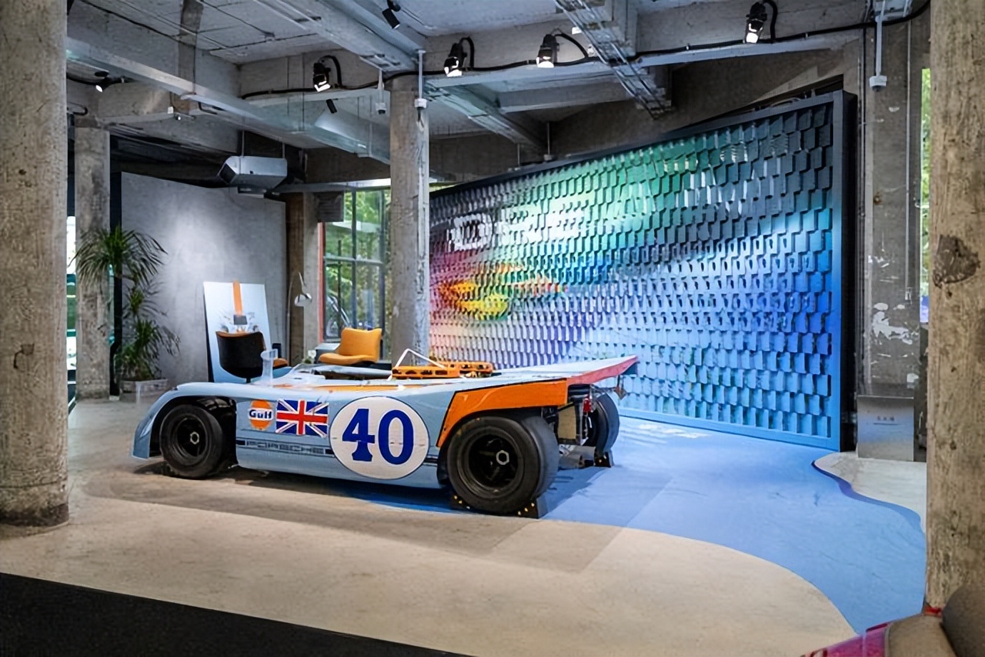 为梦着色:超过200把车钥匙在色彩缤纷的展墙上光影交错,对应着保时捷为中国市场提供的众多车漆色彩,体现“您的梦想,我们打造”的个性化服务理念。展区更重现传奇赛车908经典的海湾蓝涂装,让观众近距离感受专属定制的艺术美学;