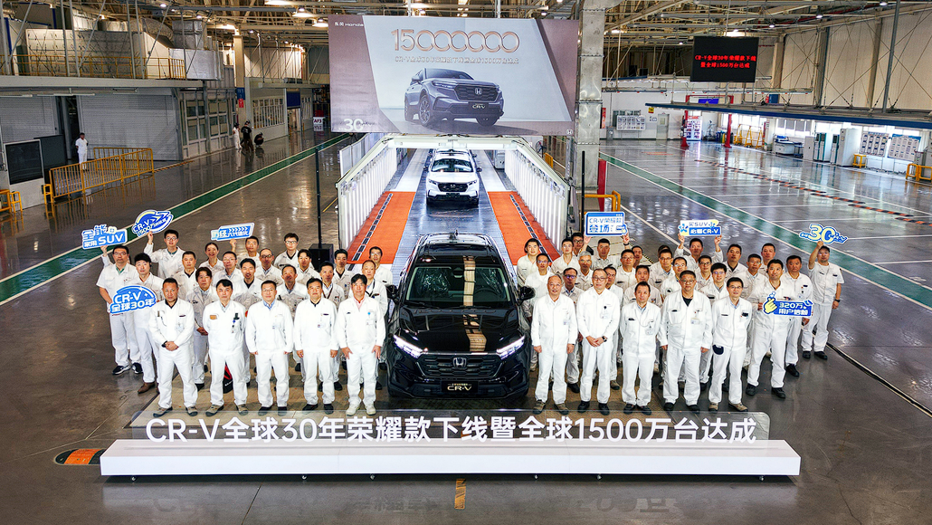 站在1500万辆的新起点,CR-V全球30年荣耀款也于同日在东风本田第三工厂内缓缓驶下生产线。1500万辆是荣誉,是里程碑,更是新征程的基石,而新车的下线,则代表着CR-V面向未来的全新进化,在电动化与智能化浪潮中继续稳健前行。