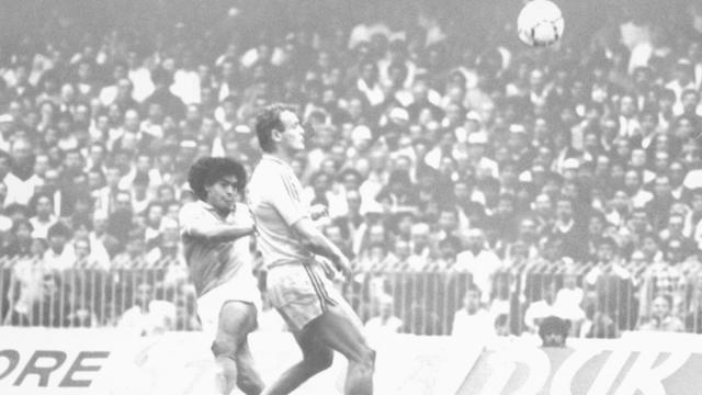 再回到1990年世界杯。意大利对阿根廷,圣保罗球场。我们起初当然为意大利加油。斯基拉奇进球,我挥动着国旗。可不久之后,阿根廷扳平比分,那个荒谬却完美的进球,来自马拉多纳的助攻。他轻巧地挑传,把球正好吊到卡尼吉亚的头顶。曾加选择出击,结果却被对手抓个正着,比分变成了1比1。