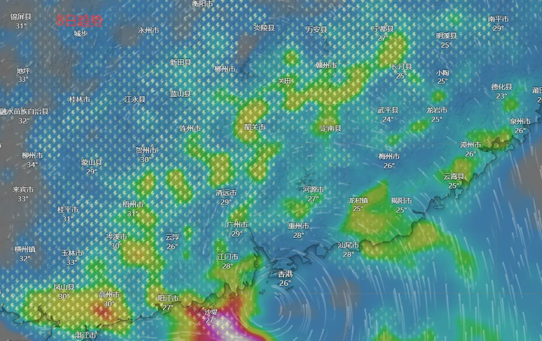 EC认为在8日的时候,在南海不断增强,相对于初期来说,延迟了一点,过后不断在副热带高压的带动之下,往我国华南靠近,而重点就是广东,预计在8日的时候,可能在珠江三角洲区域登陆,然后继续偏西发展,有可能再次增强一点,达到999hPa,然后继续穿过,进入到北部湾发展。