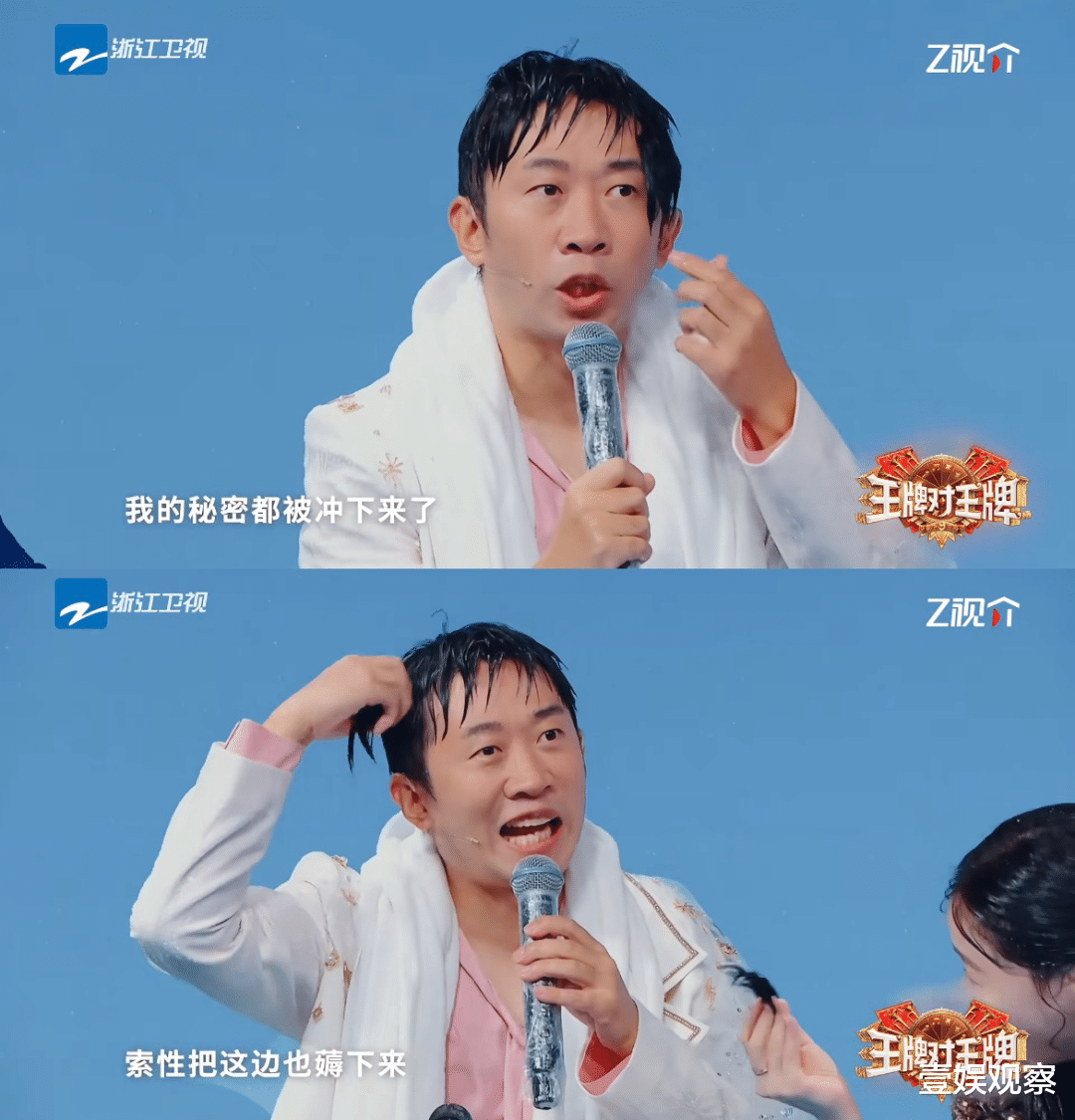 除了选人,《王牌》历来的另一节目核心是游戏。毕竟在此前游戏中,诞生出了关晓彤在“五个字”的提示下坚持“收费的”的循环回答、沙溢“你这里有歌吗?有歌”等名场面,而单单抢答猜歌词淋水惩罚这一个游戏,弹出的遮雨道具就被玩出了花。