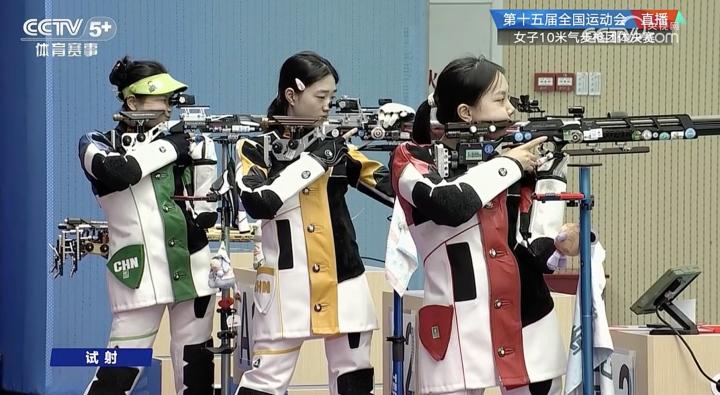 本届全运会女子10米气步枪团体比赛,浙江队派出了由巴黎奥运会射击女子10米气步枪混合团体冠军黄雨婷、射击世界杯三连冠18岁杭州姑娘王子菲和另一位世界冠军、上届全运会射击女子10米气步枪团体金牌得主韩佳予组成的“梦幻阵容”,向金牌发起冲击。