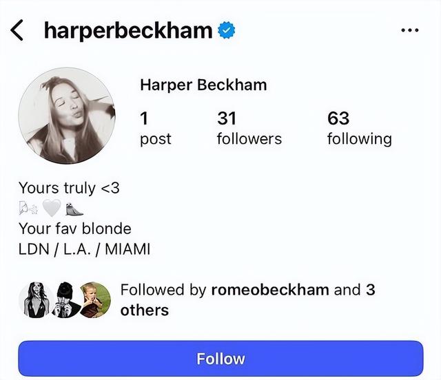 贝克汉姆家近日因一件“小事”掀起波澜:刚满十四岁的“小七”哈珀在24号开通了Instagram账号,而她的亲哥哥布鲁克林与嫂子妮可拉却迟迟没有关注。别看动作不大,在社交媒体即名片的今天,这个疏忽迅速在外网引爆讨论。