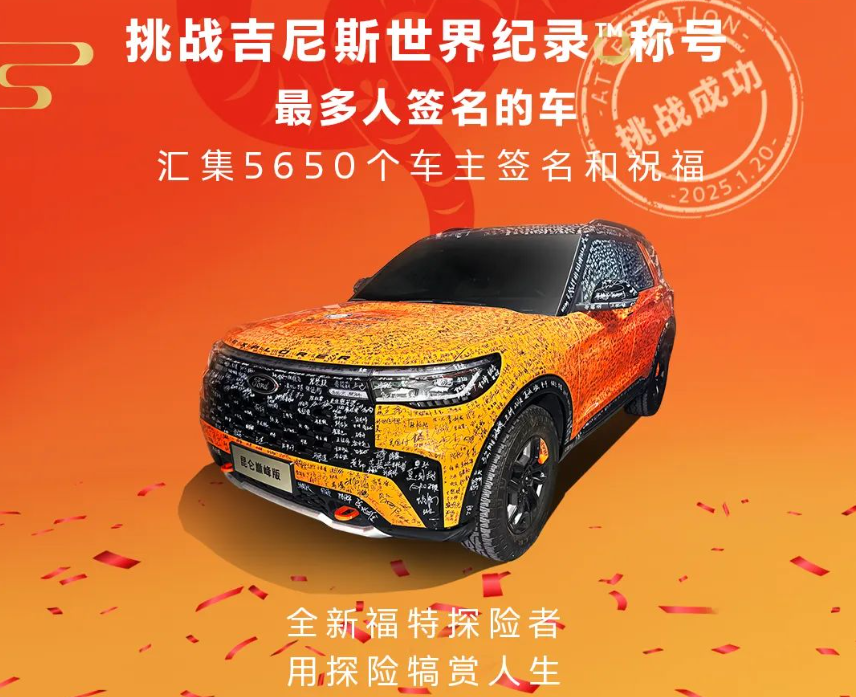就这么一台好车,前段时间还完成了挑战吉尼斯世界纪录的称号,5000多个车主都签名了,是不是也证明了探险者车主对爱车品质的肯定?