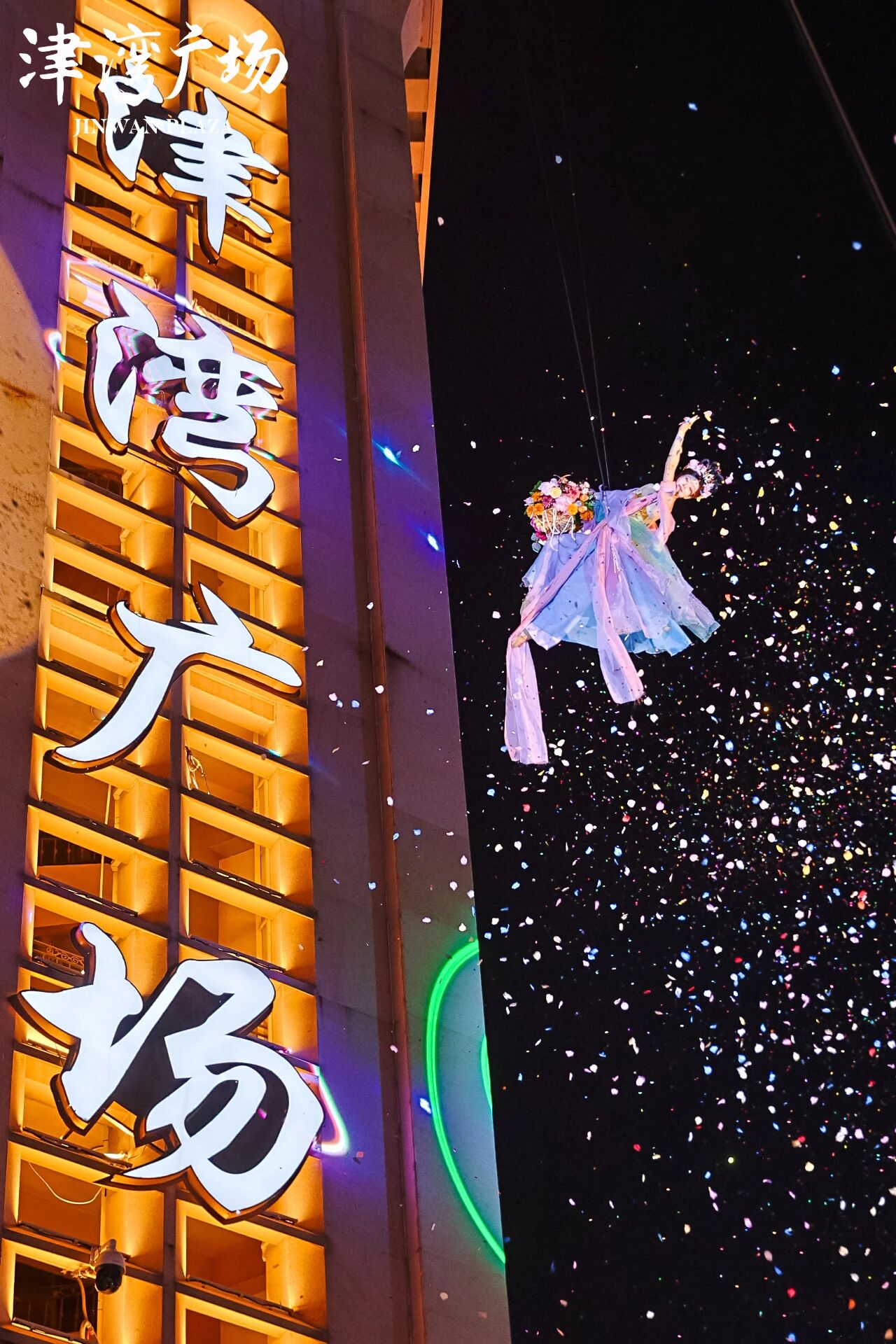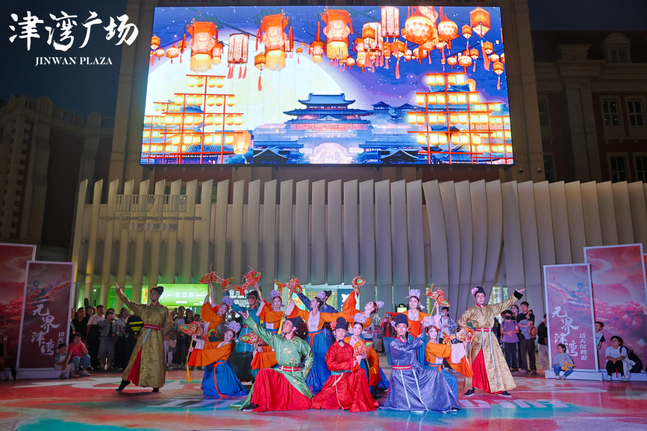 在空间无界上,彻底打破单一剧场的限制,构建起“主会场+散点联动”的全域舞台。以津湾大剧院为核心举办“武林风世界冠军巅峰战”,实现专业赛事的集中呈现;亲水平台上演“洛神塔赋”(改编自《洛神水赋》)威亚飞天舞、名家演唱会,让艺术与海河景观交融;城市U盘“口袋公园”打造“津门往事” 非遗展演区,主广场上演《龙门金刚》等国风舞蹈,5号楼推出“无界秋季艺术展”……从封闭剧场到开放广场,整个津湾都是“处处是舞台”的演艺载体。