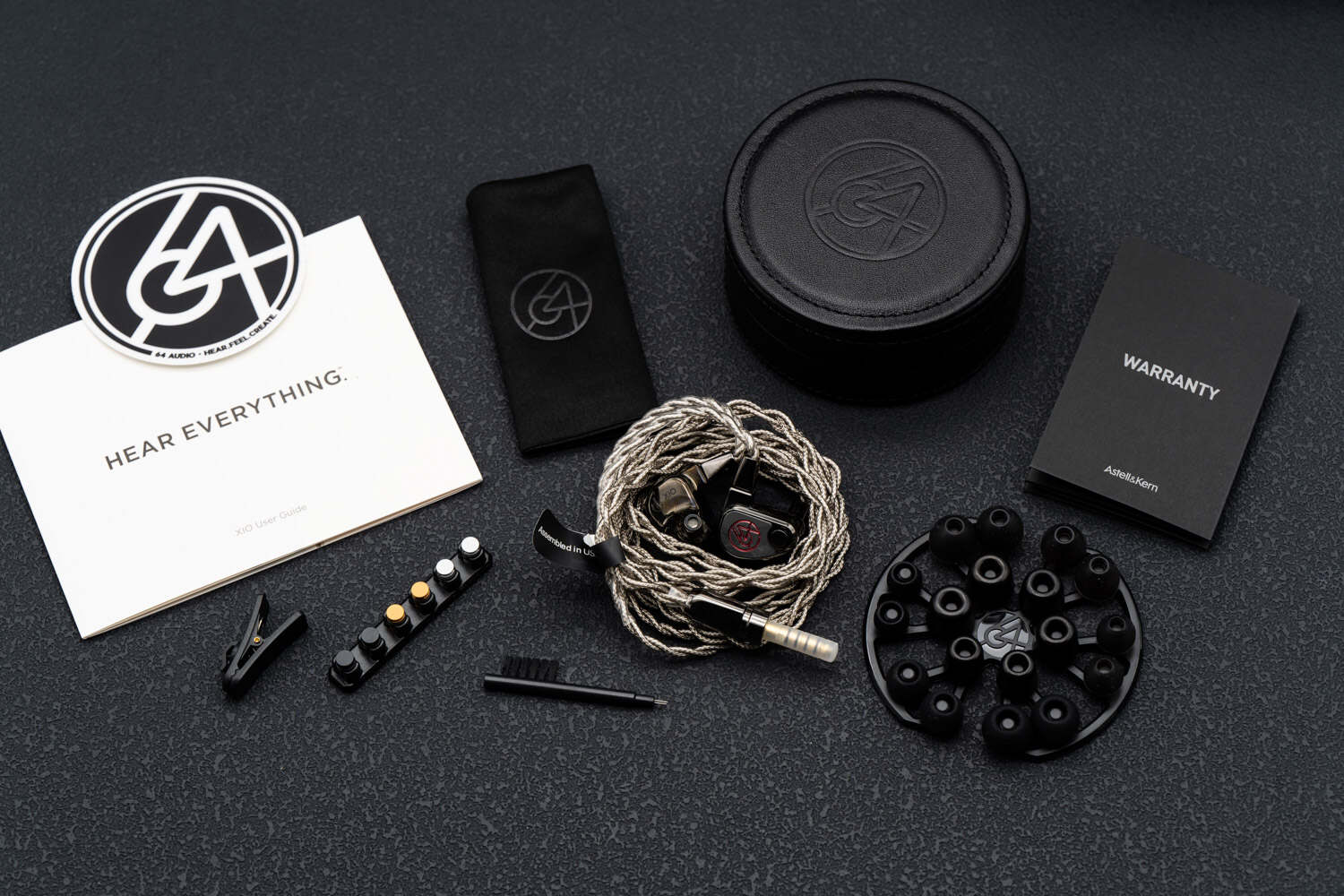 2圈8铁10单元的XIO,除了有号称“劳力士钢”的904L不锈钢外壳加上DLC镀层带来的极致观感,以及每次AK和别人联名都能拉高后者的设计做工水平的“正向buff”,让这次的XIO虽然是64 Audio的经典外观设计,却在腔体质感和视觉审美上再度提升了一个层次,乌黑色的镜面高光和面板的灰色光影设计+红色logo,都带来了强烈的视觉“高级感”,在过往64 Audio的任一款产品身上都找不到。除了腔体外,XIO的线材五金件也采用了颇具金属光泽感的材质与工艺,来和腔体相呼应,配合银灰色的线材,有较高的视觉一体感。但这套设计语言极其材质仍然避免不了沾染指纹的问题,需要经常擦拭;好在这段时间使用下来,XIO的外表涂层抗刮性能不错,几乎没有在日常使用中留下划痕。