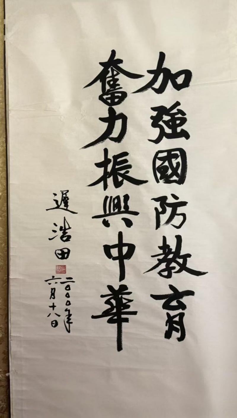 本次书画展有幸展出了第十五届中央政治局委员、中华人民共和国国防部原部长迟浩田上将,于2000年6月18日为国防教育题写的“加强国防教育 奋力振兴中华”等多幅珍贵墨宝。