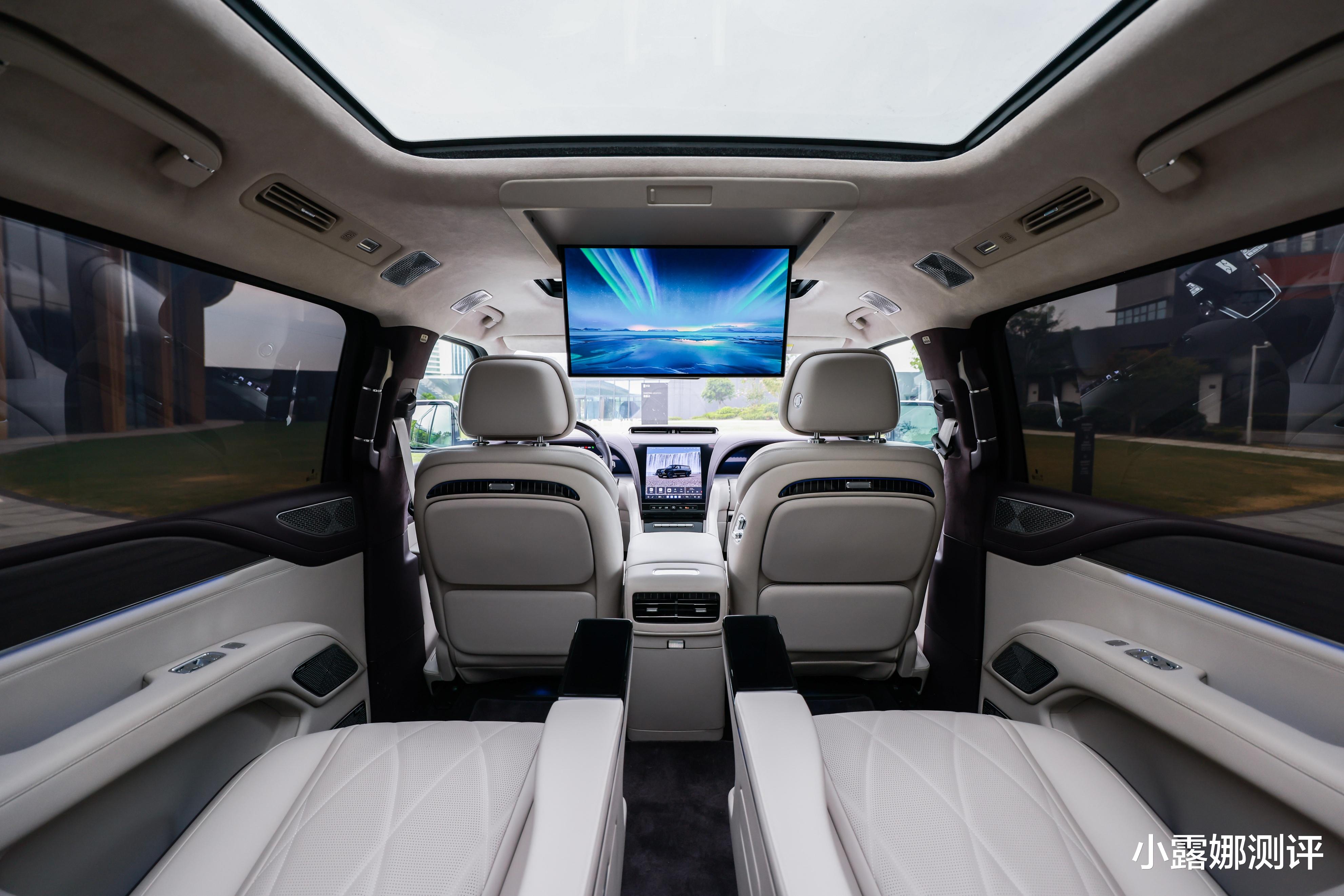 豪华体验上,坐在里面更是享受,配备2+2+2灵活座椅布局,二排座椅还能180度大躺,按摩、观影、云卧一键切换,还有18点热石按摩+丹拿32扬声器,配5.3m³巨舱+智能冰箱+分区隐私车窗,性能和续航也没话说,880kW功率,3.5秒破百,但5.45m转弯半径却像A级轿车一样灵活。