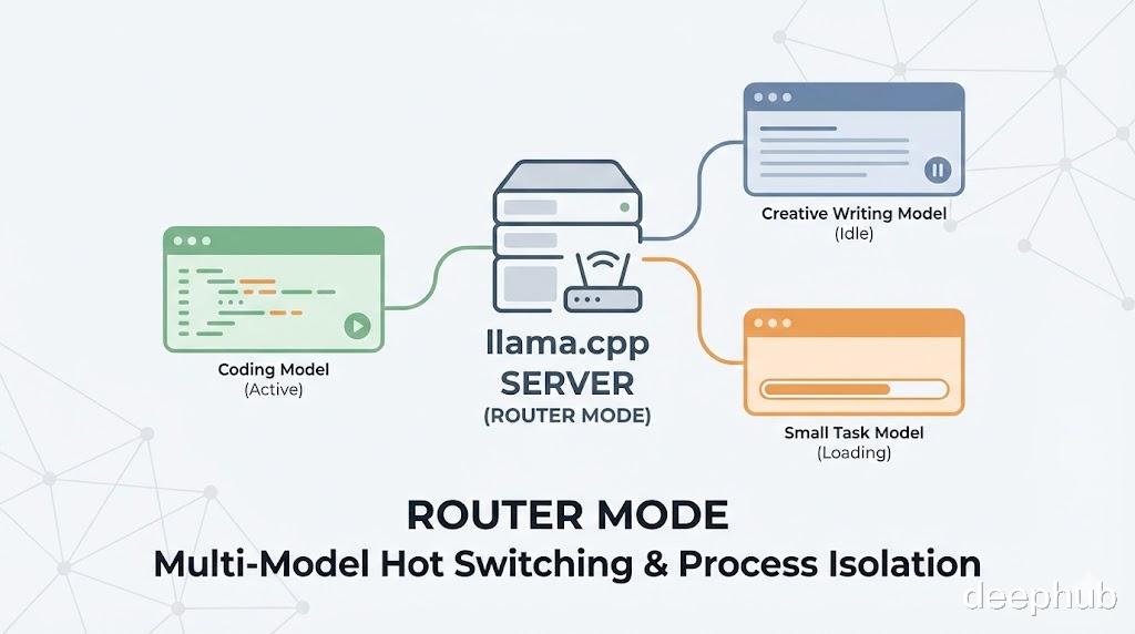 llama.cpp server在 2025年12月11日发布的版本中正式引入了 router mode(路由模式),如果你习惯了 Ollama 那种处理多模型的方式,那这次 llama.cpp 的更新基本就是对标这个功能去的,而且它在架构上更进了一步。