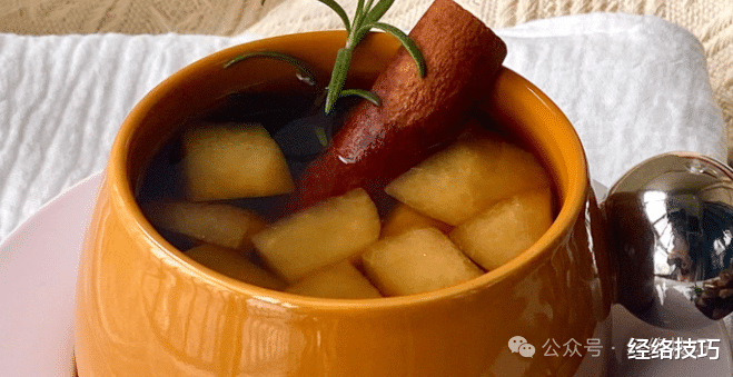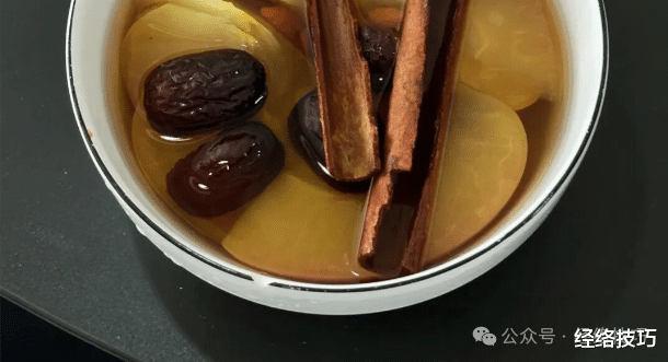 苹果1个,肉桂粉2克或是一小根肉桂,去核红枣5颗,肉桂可使身体暖和起来,驱散寒气,与苹果一同煮,能中和苹果的微微凉意。