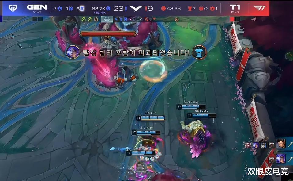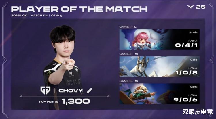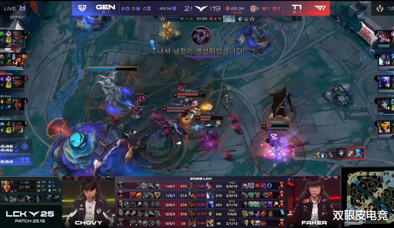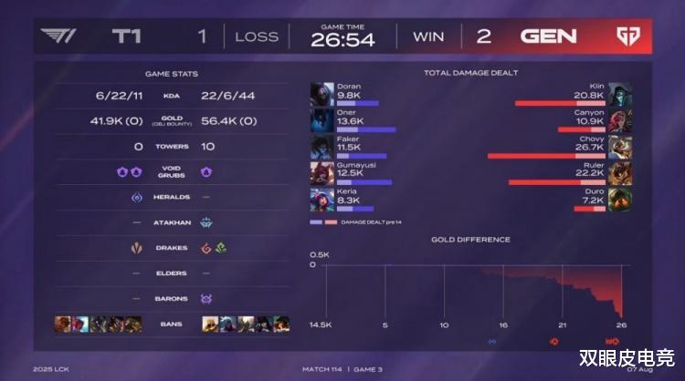 随着前两局打比分1-1的结束,本场BO3也迎来了高潮。其实两队BP做的基本五五开,但是这把Chovy的飞机又站了出来,最终以9-0的战绩以及5.5k的对位经济差,彻底把第一局的“耻辱”也顺利报了第三阶段第一轮的仇。