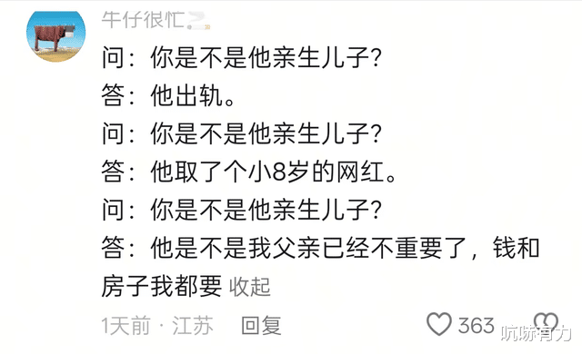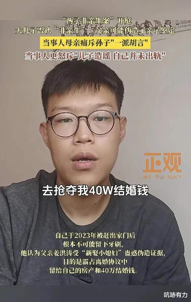 即便这样,老姜还是做人留一线,称只要大儿子和他做亲子鉴定,结果表示是亲生父子。