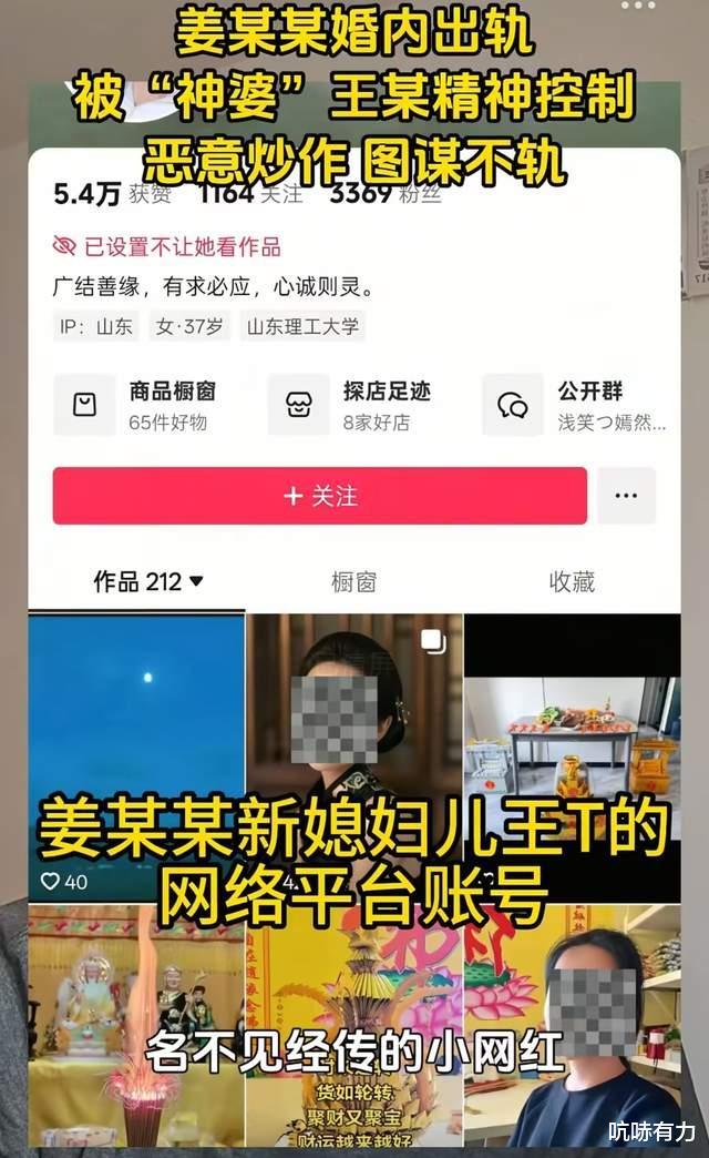 在大儿子口中老姜的现任妻子年轻漂亮,是个小网红,还是个封建迷信者。