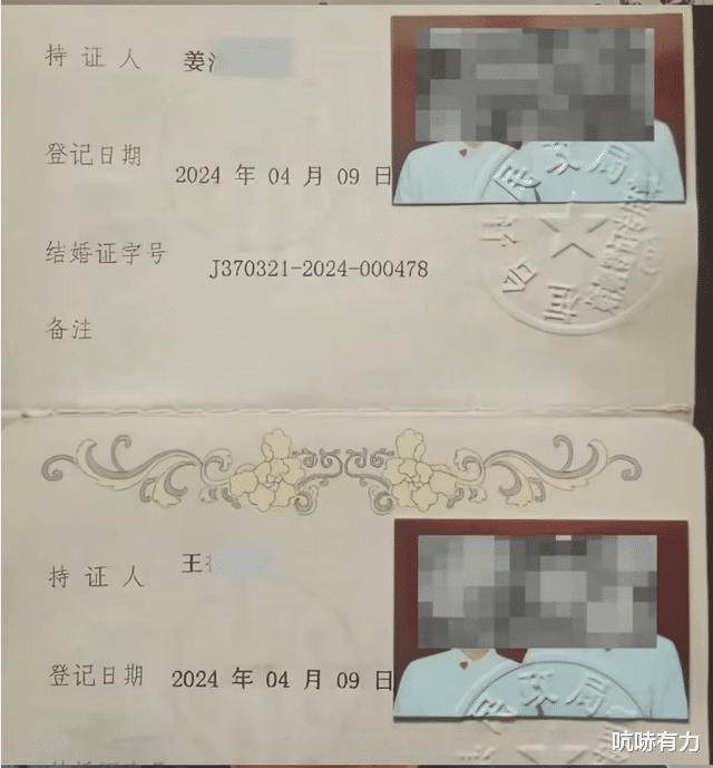 老姜和现任妻子王某在2024年领证,在网络上小有名气,有几千的粉丝。