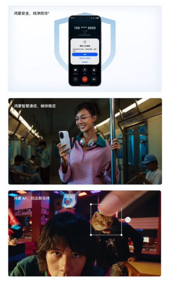智能体验同样亮眼:AI魔法移图可调整画面中的元素;小艺智能体支持语音订票、通话摘要、圈选购物等功能;搭载鸿蒙智慧通信,通过AI弱网秒回、弱信号增强技术,有效缓解地铁、电梯等场景下的信号焦虑,通话更稳定,视频不卡顿。