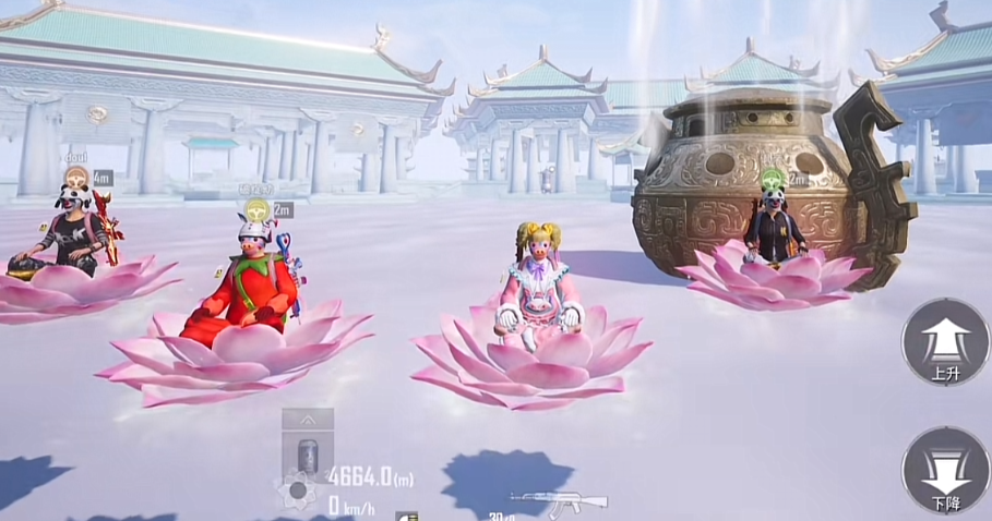 具体来说,在BR玩法的主题地图上,《和平精英》还原了玉虚宫全景,并设计了多个主题道具来呈现哪吒电影元素,包括能打开传送门的虚空拳套(对应敖闰能力)、能打出冰盾墙的盘龙冰锤(敖丙的武器)、莲花飞行器(对应莲花捏人)以及带各种效果的仙丹等。