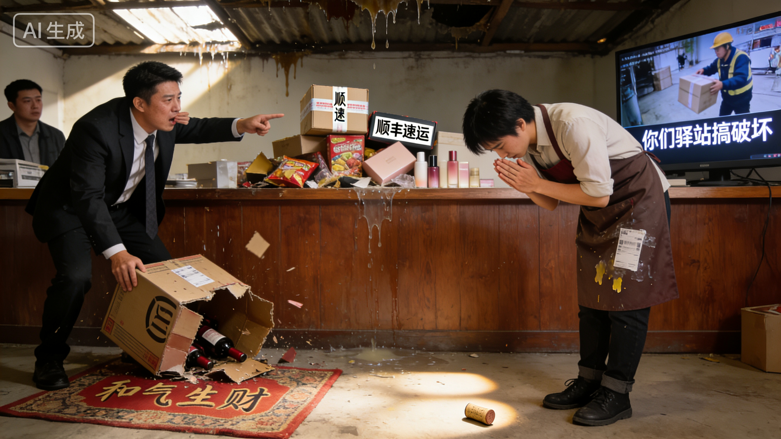 可客户不管这些啊!他们取快递的时候,看到快递坏了,第一反应就是对着我们驿站发火!“你们怎么搞的?我的快递怎么破了?”“是不是你们拿的时候弄坏的?”“赶紧给我赔!”