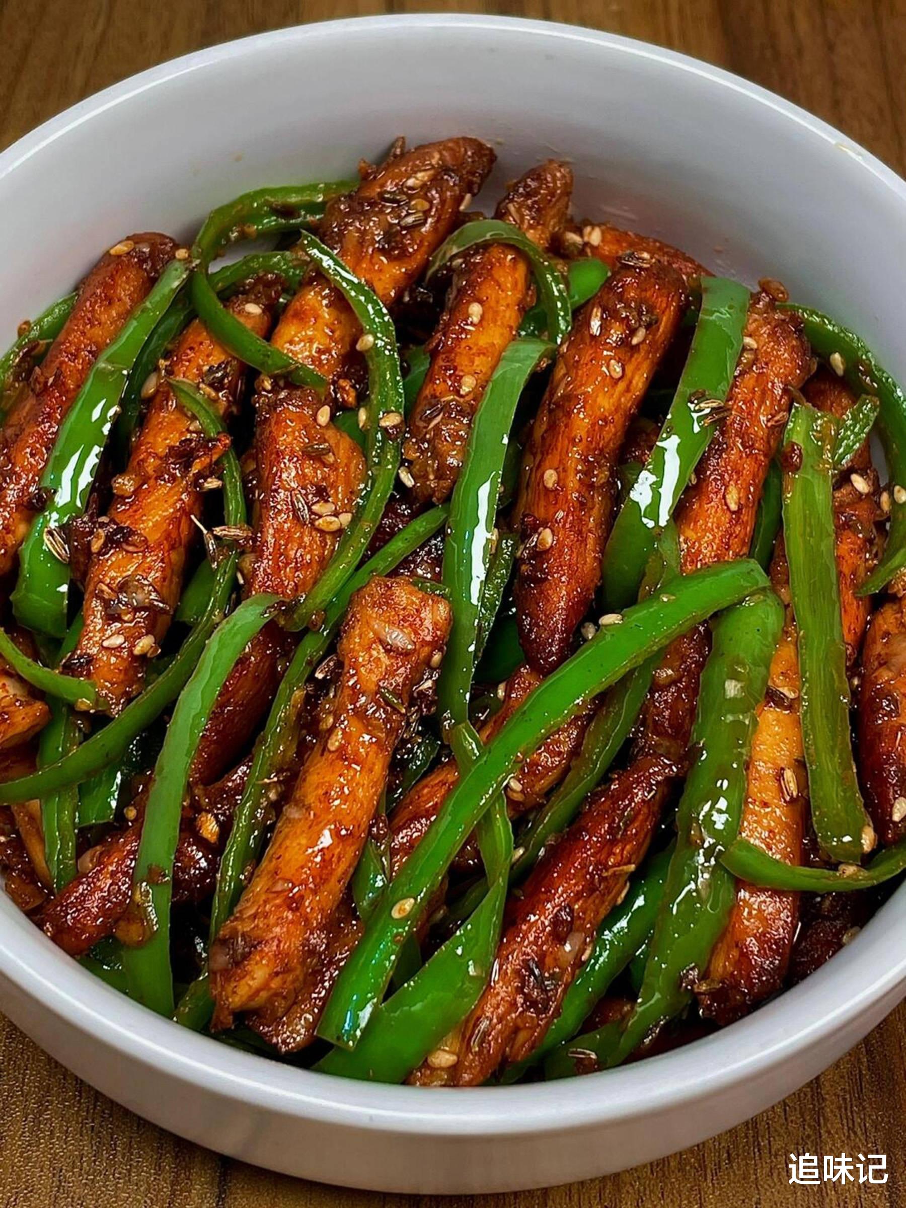 青椒炒鸡胸肉鸡胸肉嫩滑入味,带着孜然的独特香气,青椒的清脆和鸡肉的嫩滑相得益彰,每一口都充满了浓郁的孜然和辣椒香味,让人食欲大开。