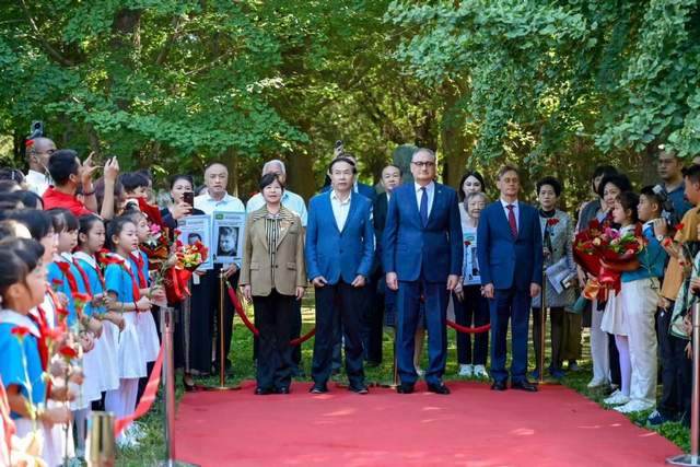 俄罗斯驻华大使莫尔古洛夫在致辞中表示,今天的活动彰显着我们对英烈的深切缅怀与崇高敬意。《苏联飞鹰》雕塑象征着俄中两国在共同抗击法西斯斗争中形成的互助友爱传统,这种传统至今仍是俄中关系蓬勃发展的坚实基石。在纪念胜利80周年的特殊时刻,双方更应铭记历史、珍惜和平,推动中俄新时代全面战略协作伙伴关系持续向前发展。