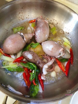 放入不爱数的八爪鱼头,翻炒几分钟。