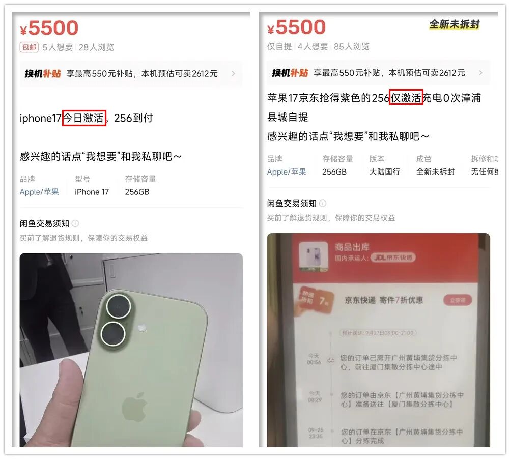 我找了一圈iPhone17国行版,目前拆封99新仅激活新机卖5500元是正常价,适合想在国庆前拿到机器的人,既省到500块,又能拿到现货,我个人倾向这种,心态好点可以当全新机。