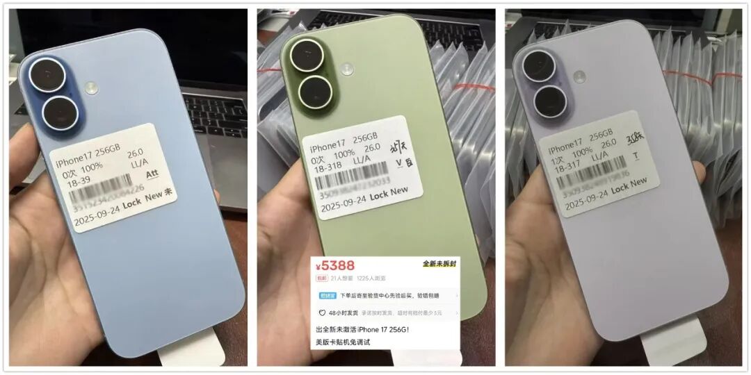 除充新国行机外,还有一种便宜的iPhone17,那就是美版卡贴机。目前256G全新未激活是5388元,但这种机没包装盒,都是全新裸机,需要用卡贴解开网络锁。我上一次买卡贴机还是送媳妇的iPhoneX,那时候有ICCID漏洞可实现有锁变无锁,现在太久没研究这玩意了。