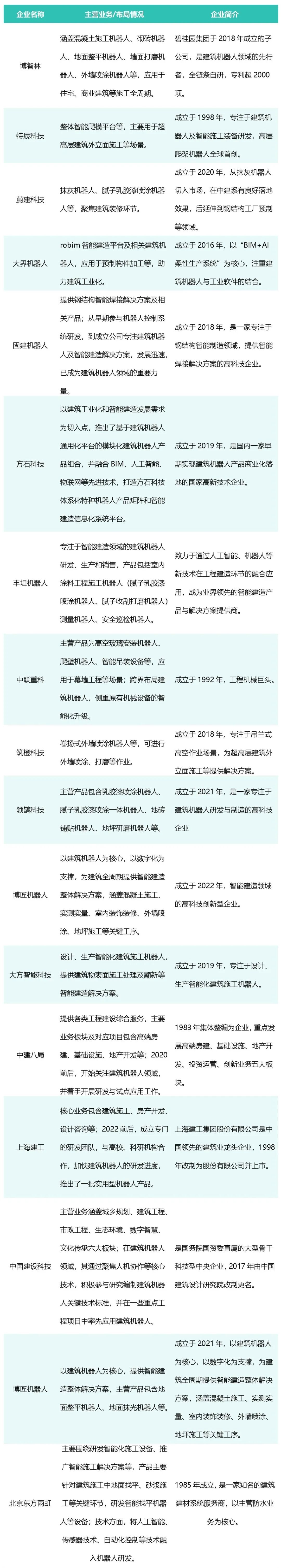 建筑集团、机械设备制造商、建材巨头,甚至一些传统机器人企业与新兴创业公司,都在不同程度上投入资源,试图在这条赛道上占据一席之地。
