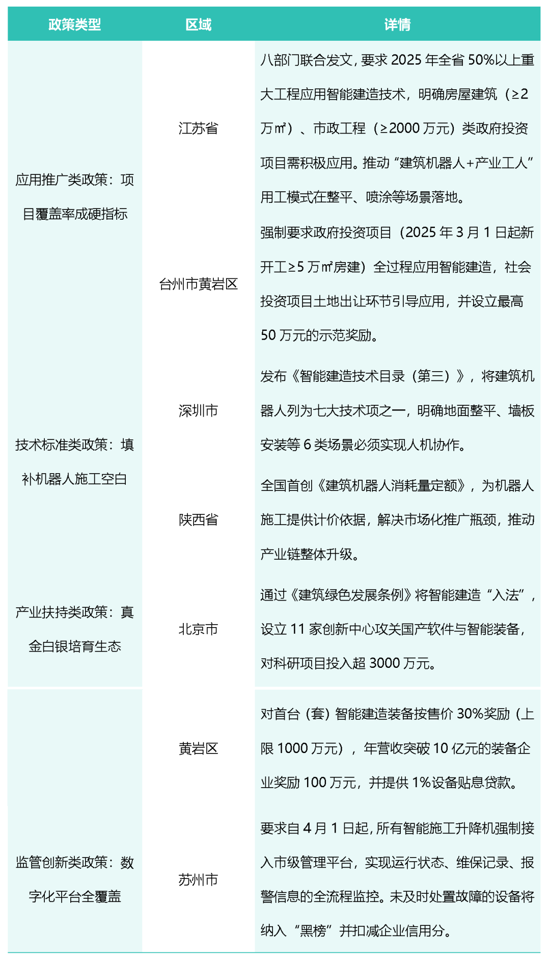 值得注意的是,深圳不是唯一一个关注建筑机器人的城市,更广阔的政策版图,正在悄然铺开。