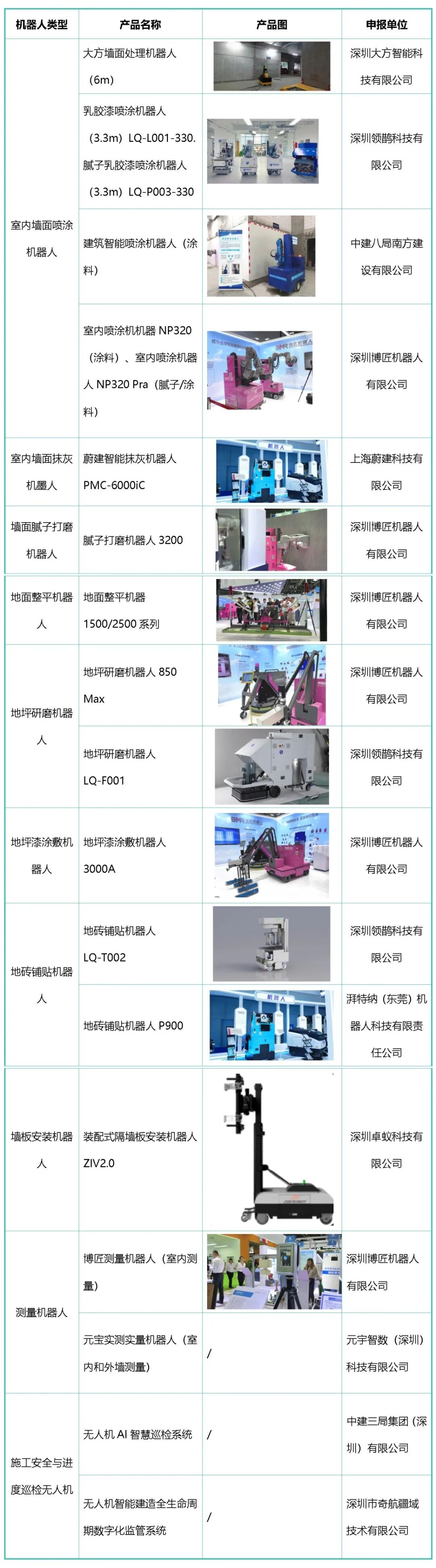 图表:《深圳市建筑机器人产品目录(第一批)》