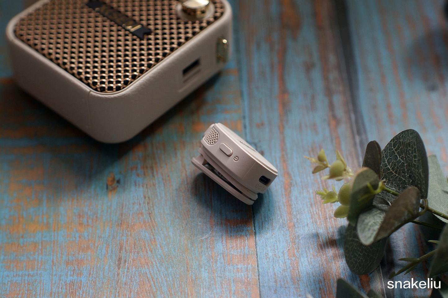 这台西圣BEE主要的两点,还是这颗配套的无线麦克风,麦克风不仅尺寸迷你,而且是高灵敏度的受话器。通过无线方式和主机连接,只需开机就会自动连接无需过多操作。麦克风侧面有一个电源键,长按开机,使用中短按可以起到静音效果,基本做到了现在可连接手机的无线麦克风的功能。